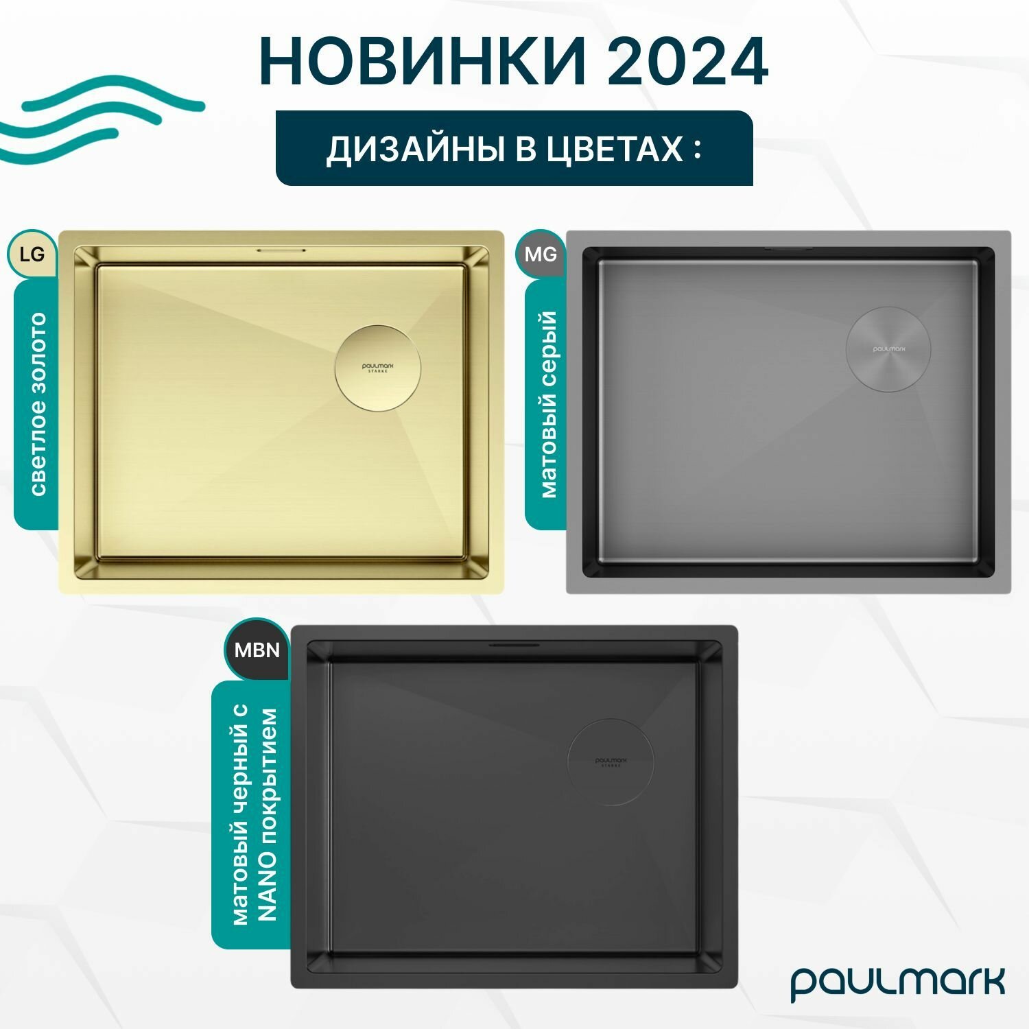 Мойка для кухни из нержавеющей стали Paulmark KRONER 59 590х510 мм, PVD покрытие, отверстие под смеситель, врезная, подстольная и вровень со столешницей, цвет вороненая сталь