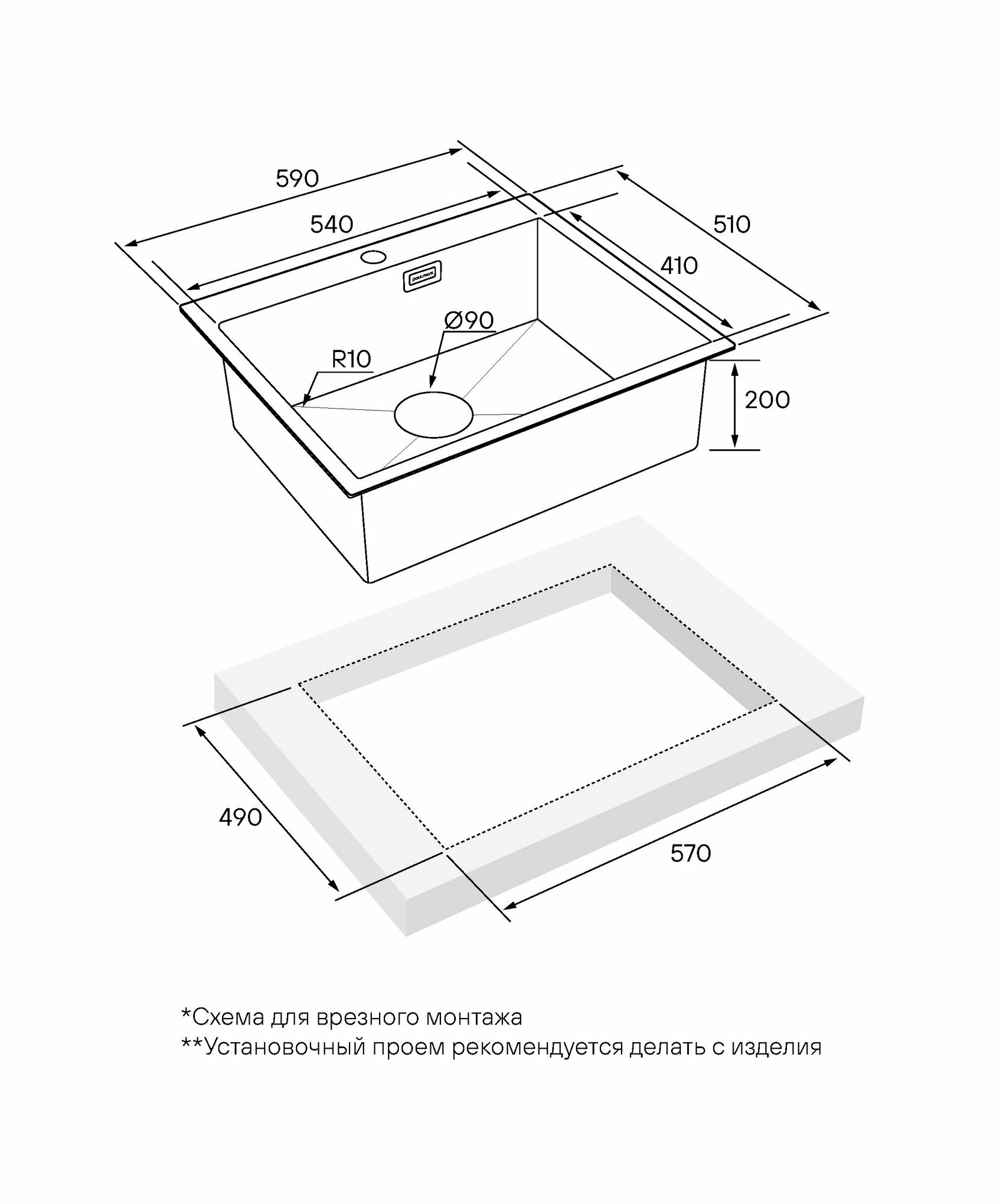 Мойка для кухни из нержавеющей стали Paulmark KRONER 59 590х510 мм, PVD покрытие, отверстие под смеситель, врезная, подстольная и вровень со столешницей, цвет вороненая сталь
