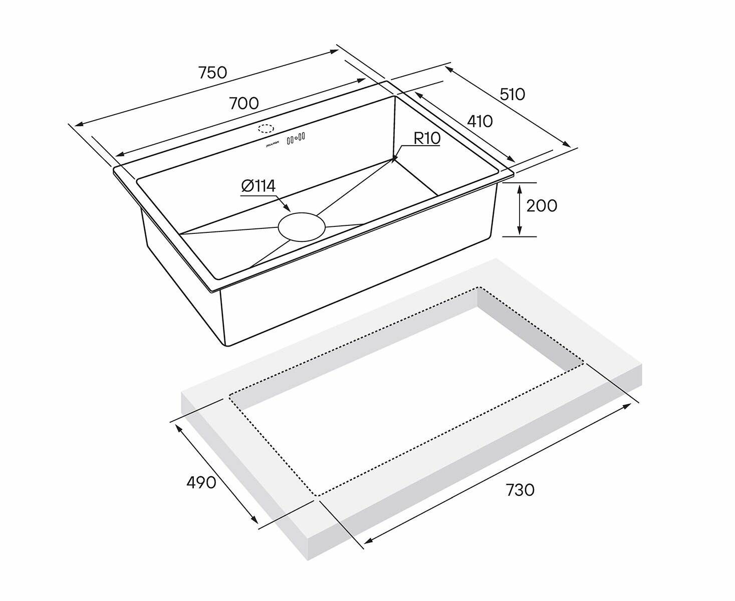 Мойка для кухни из нержавеющей стали AISI304 Paulmark VELTEN 75, 750х510 мм, шумопоглащающее покрытие, отверстие под смеситель, универсальный монтаж, цвет брашированная сталь