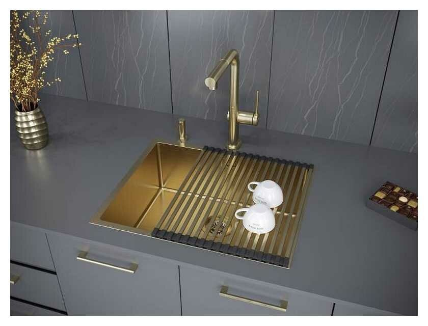 Мойка для кухни из нержавеющей стали Paulmark NEXT 58 UNI, 580х440 мм, PVD покрытие, универсальный монтаж, цвет брашированное золото