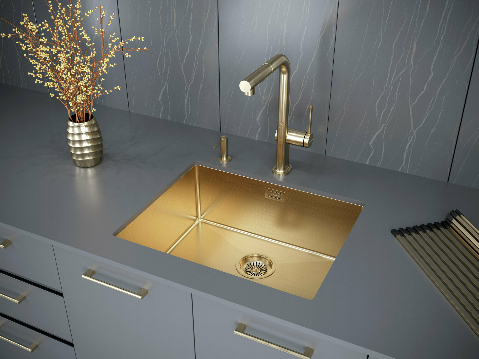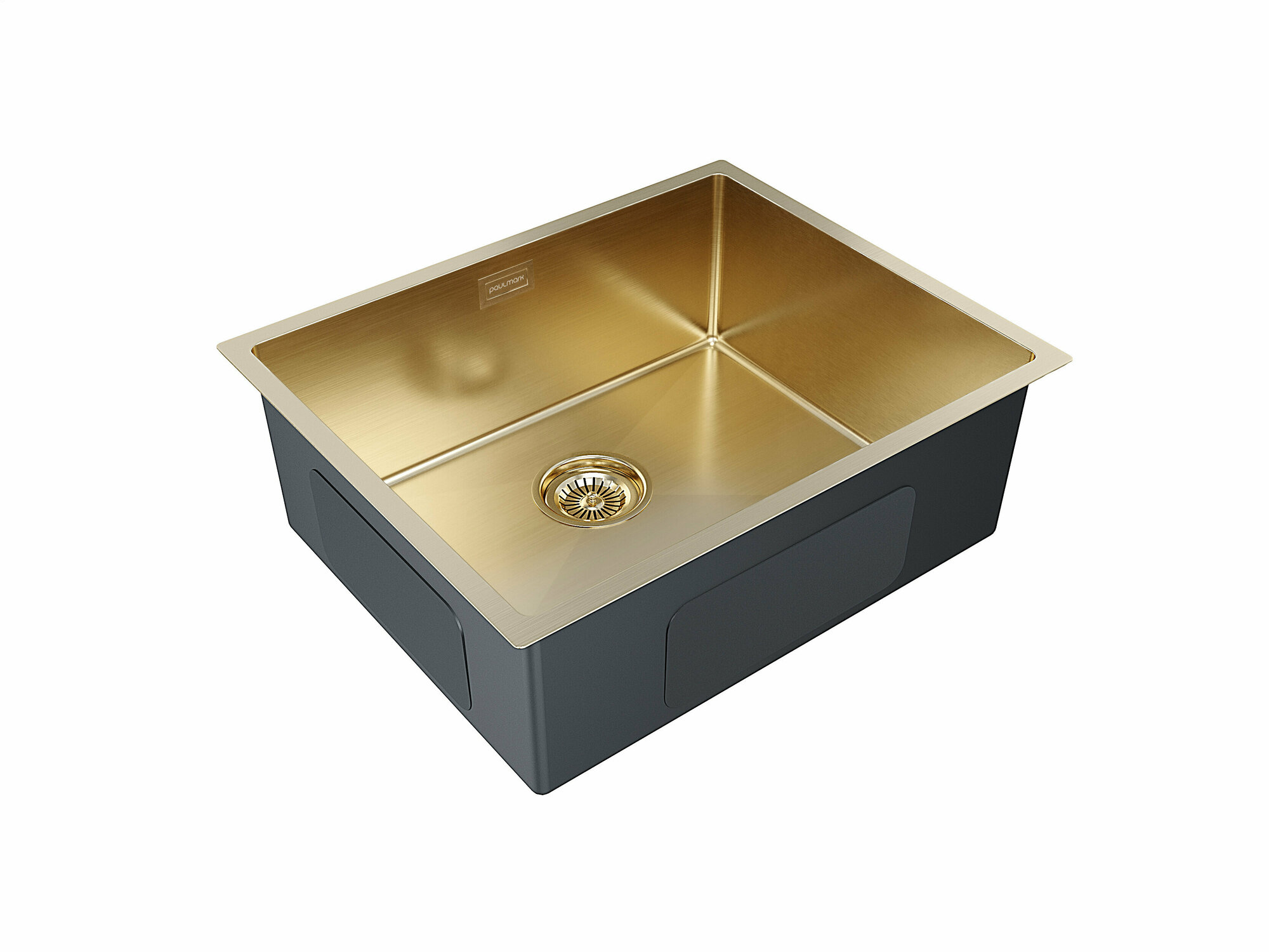 Мойка для кухни из нержавеющей стали AISI 304 PVD Paulmark NEXT 54х44 врезная / подстольная, брашированное золото, сифон, PM215444-BG
