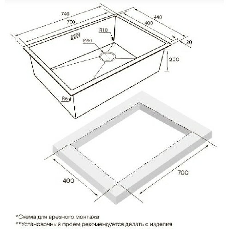 | Установка | врезная |