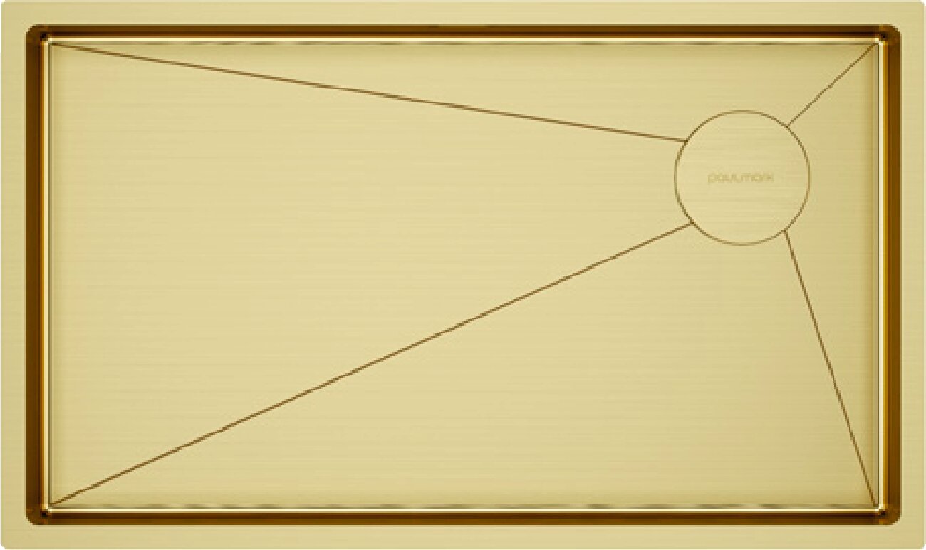 Кухонная мойка из нержавеющей стали Paulmark NEXT-SKEW 74 UNI, 740х440 мм, PVD и шумопоглащающее покрытие, врезная, подстольная и вровень со столешницей, цвет брашированное золото