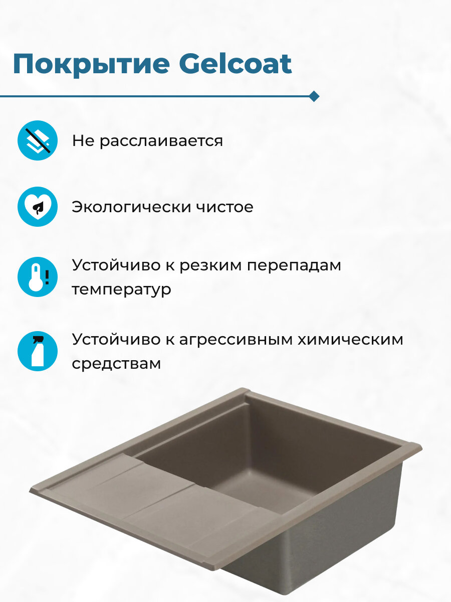 Кухонная мойка AQUATON Делия 65х51.6х21.8 литьевой мрамор, цвет Жемчуг (1A718632DE240)