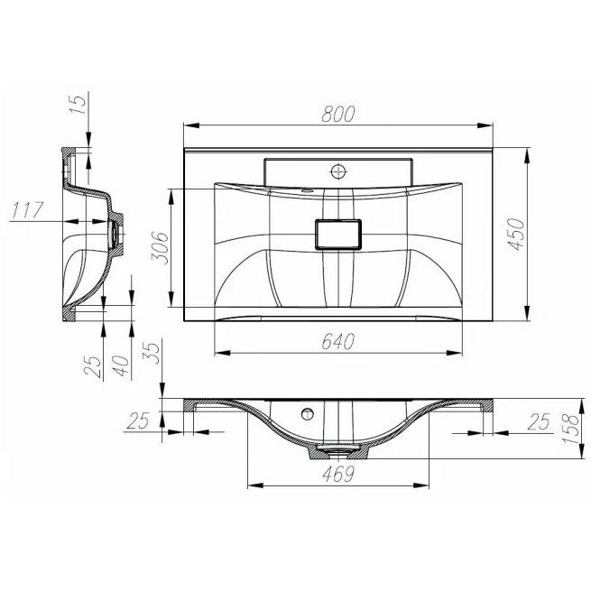 | Число размеченных отверстий под смеситель | отсутствуют |