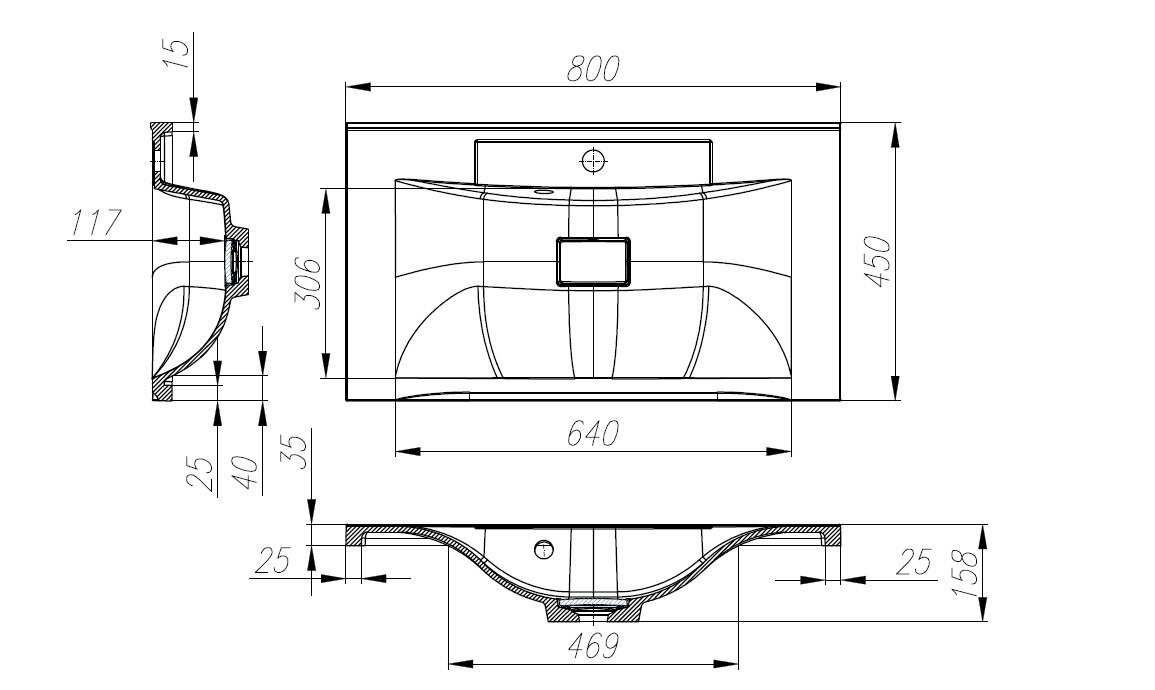 Раковина из литьевого мрамора, 800x450x150, BB800/450-LV-MR-PR