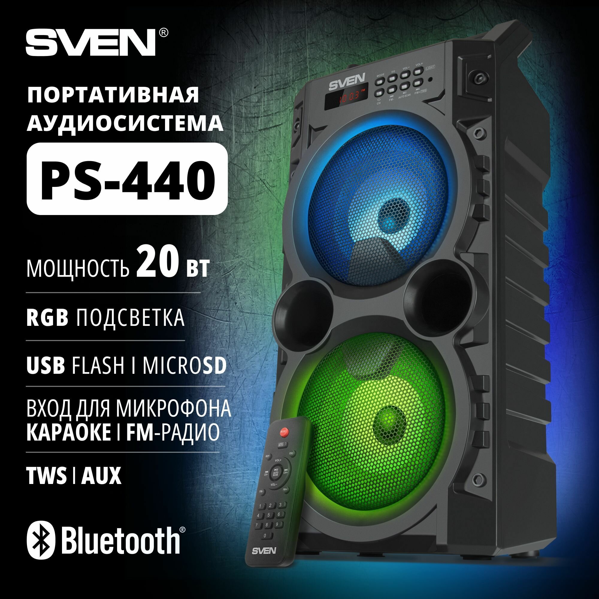 Портативная колонка Sven АС PS-440, 20Вт, черный [sv-019082]