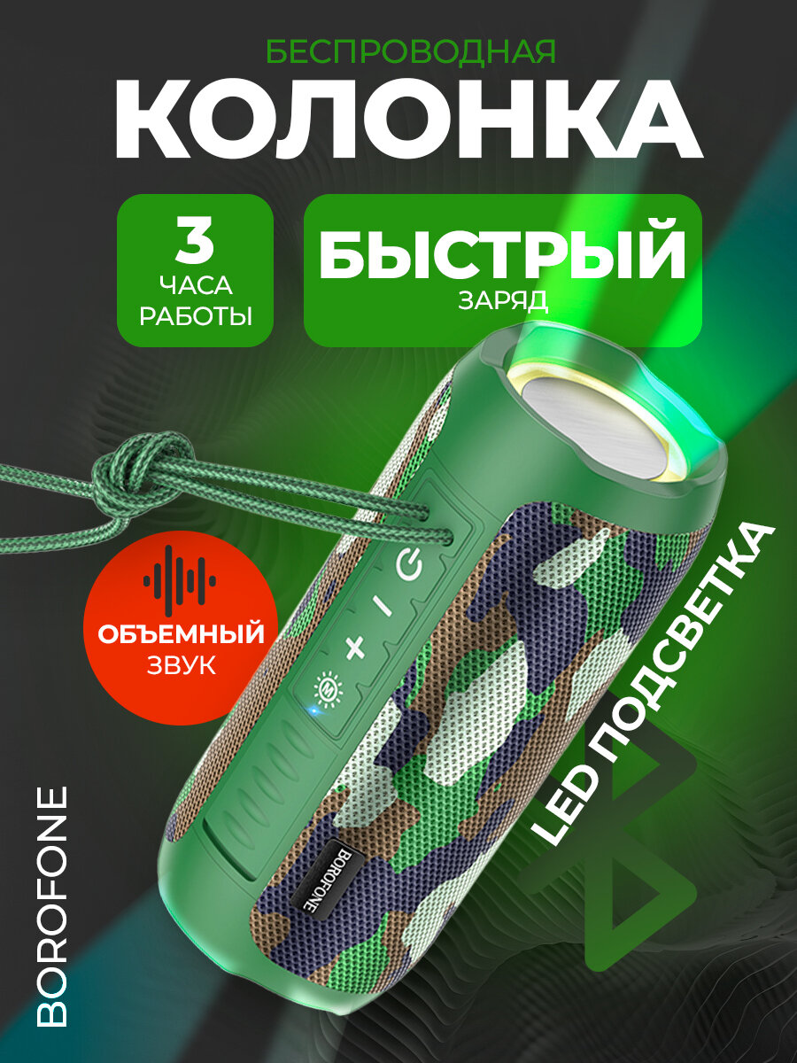 Портативная акустика Borofone BR3, 10 Вт, Camouflage Green