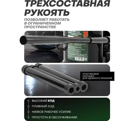 СохранитьДомкрат гидравлический RF-T93007(DS) бутылочный низкопрофильный 30т (выс.подъема 262-532мм) ROCKFOR, ROCK FORCE RFT93007DS (1 шт.) интересное:
