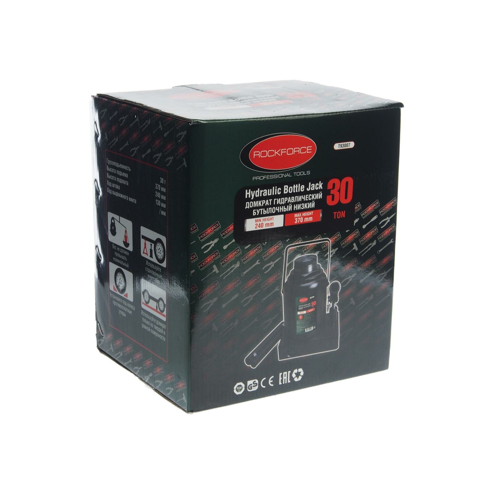 Домкрат бутылочный 30т низкопрофильный (высота подхвата - 240мм, высота подъема - 370мм, ход штока - 130мм) Rock FORCE RF-T93007