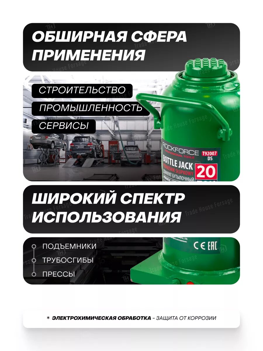СохранитьДомкрат гидравлический бутылочный, 20т RockForce RF-T92007(DS) интересное: