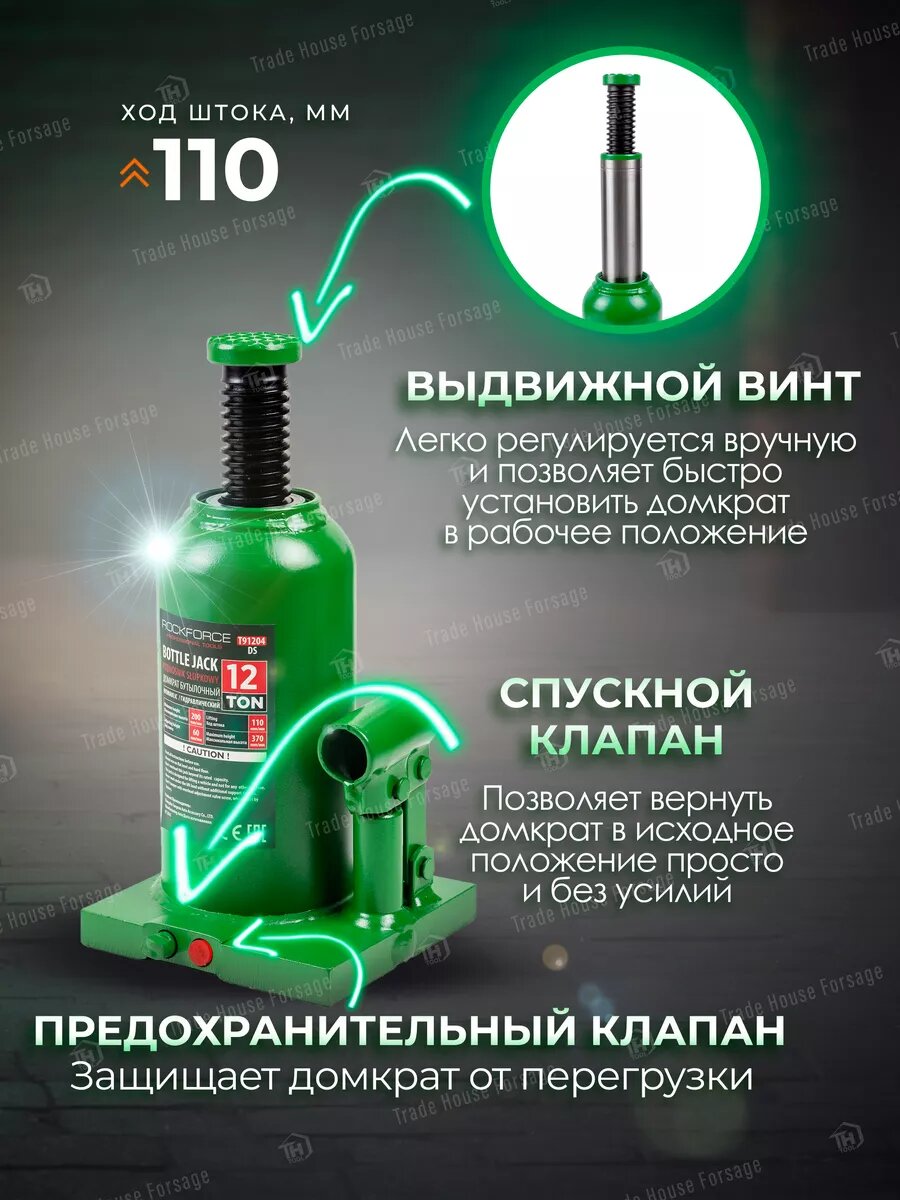 Домкрат бутылочный 10т RockForce RF-TH810001 BIG