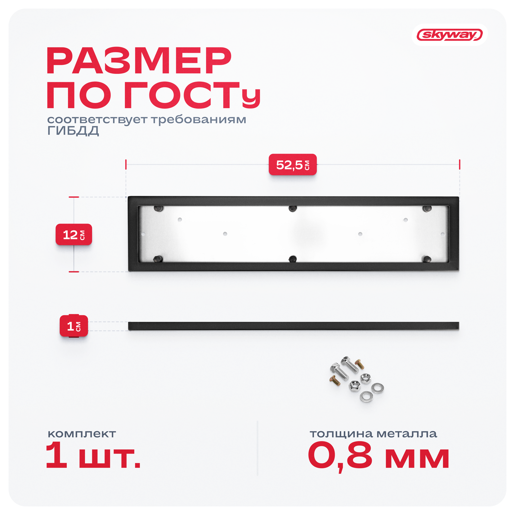 SKYWAY S04101004 Рамка под номер металл антивандал, черная 1 шт