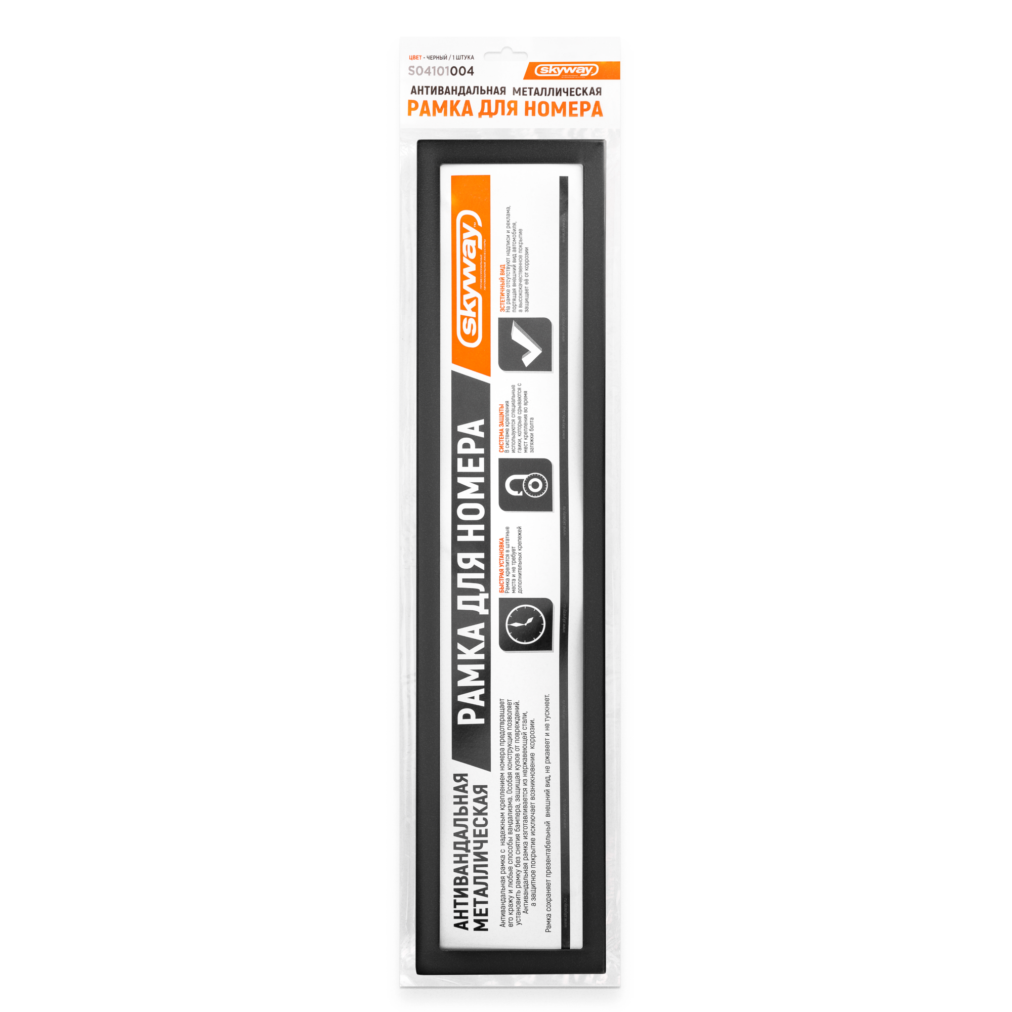 Рамка под номер "SKYWAY" (металл., антивандальная, черная)