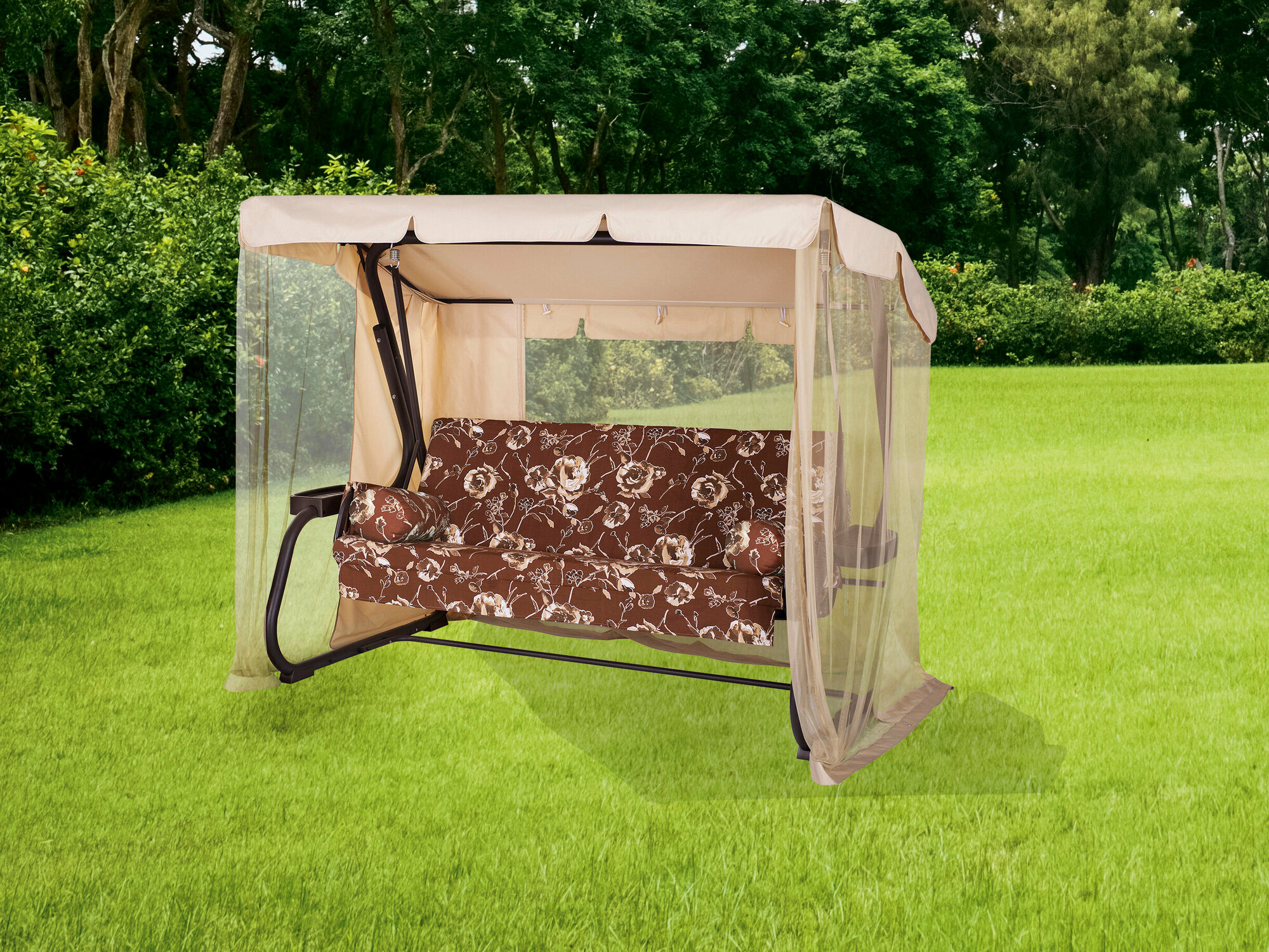 Качели садовые 4-х местные Ольса Шатер ткань панама каркас коричневый, ткань полоска бежево-коричневная