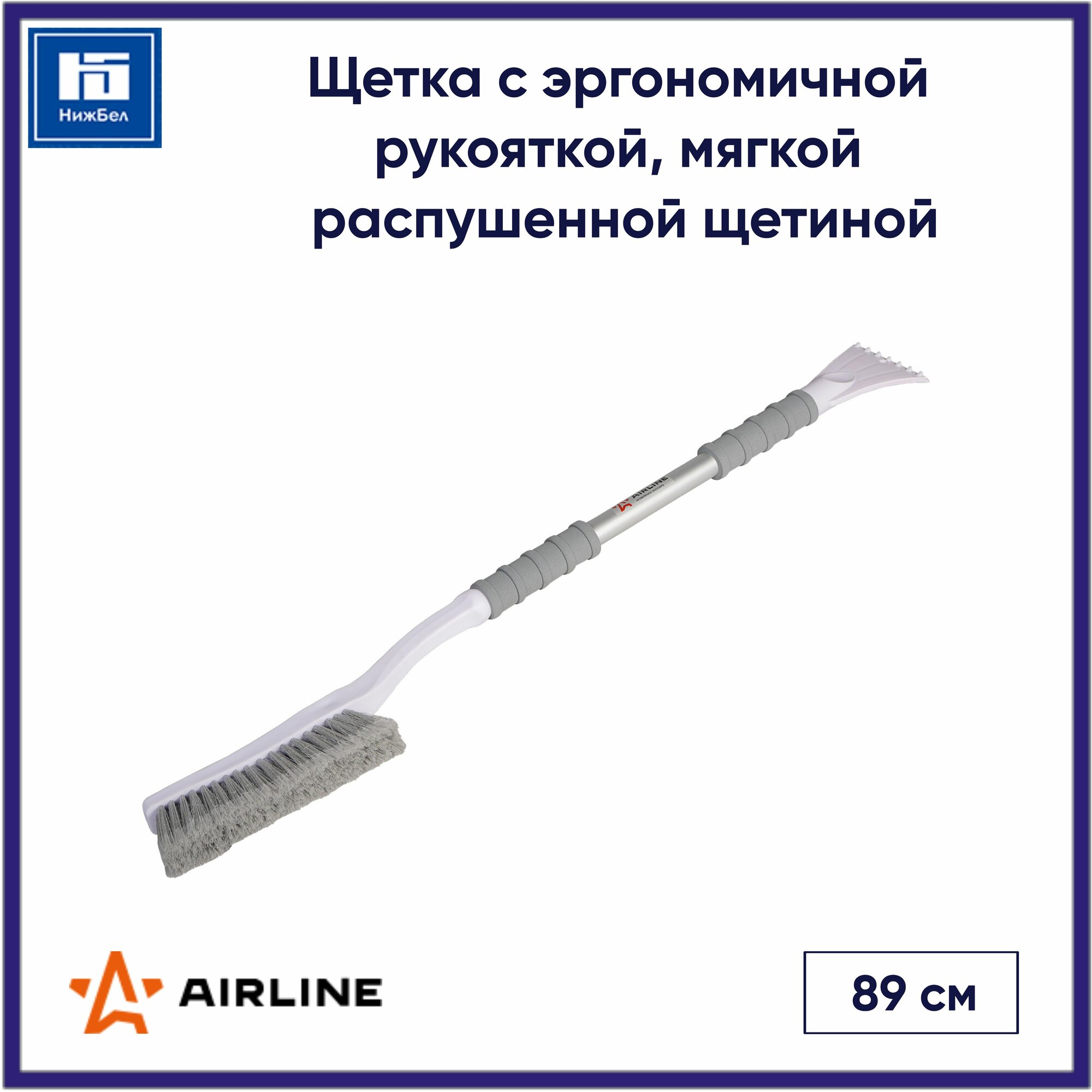 Купить AIRLINE / abr04r / Щетка от снега и льда с эрг-ной рукояткой и мягкой распушенной щетиной + скребок (90 см)