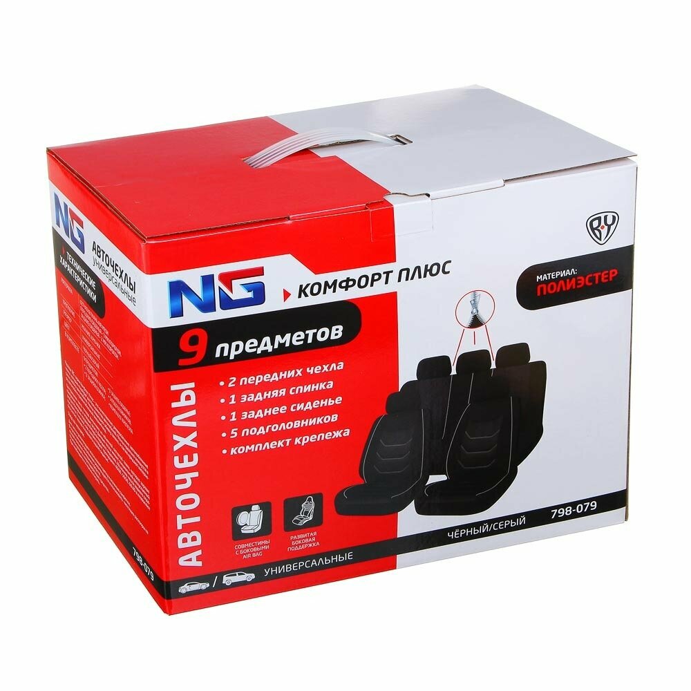 NG Авточехлы универсальные комфорт плюс 9 пр., MESH, PVC, 3 замка, Airbag, черный/серый интересное: