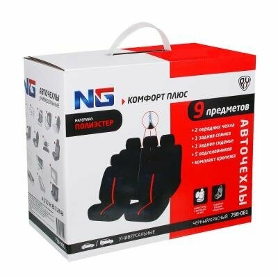 Купить NG Авточехлы универсальные комфорт плюс 9 пр., полиэстер, 3 замка, Airbag, черный/красный