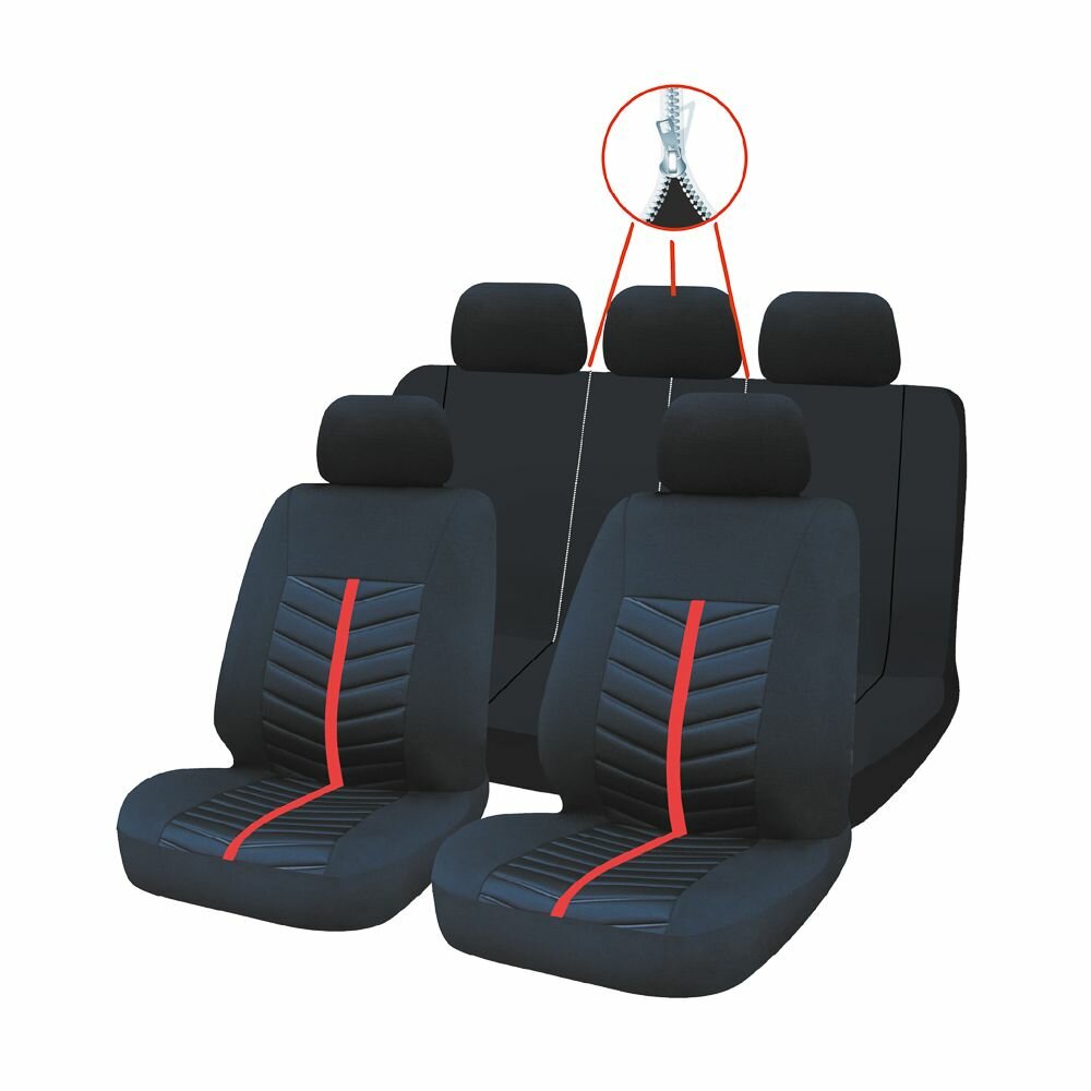 NG Авточехлы универсальные комфорт плюс 9 пр., полиэстер, 3 замка, Airbag, черный/красный интересное: