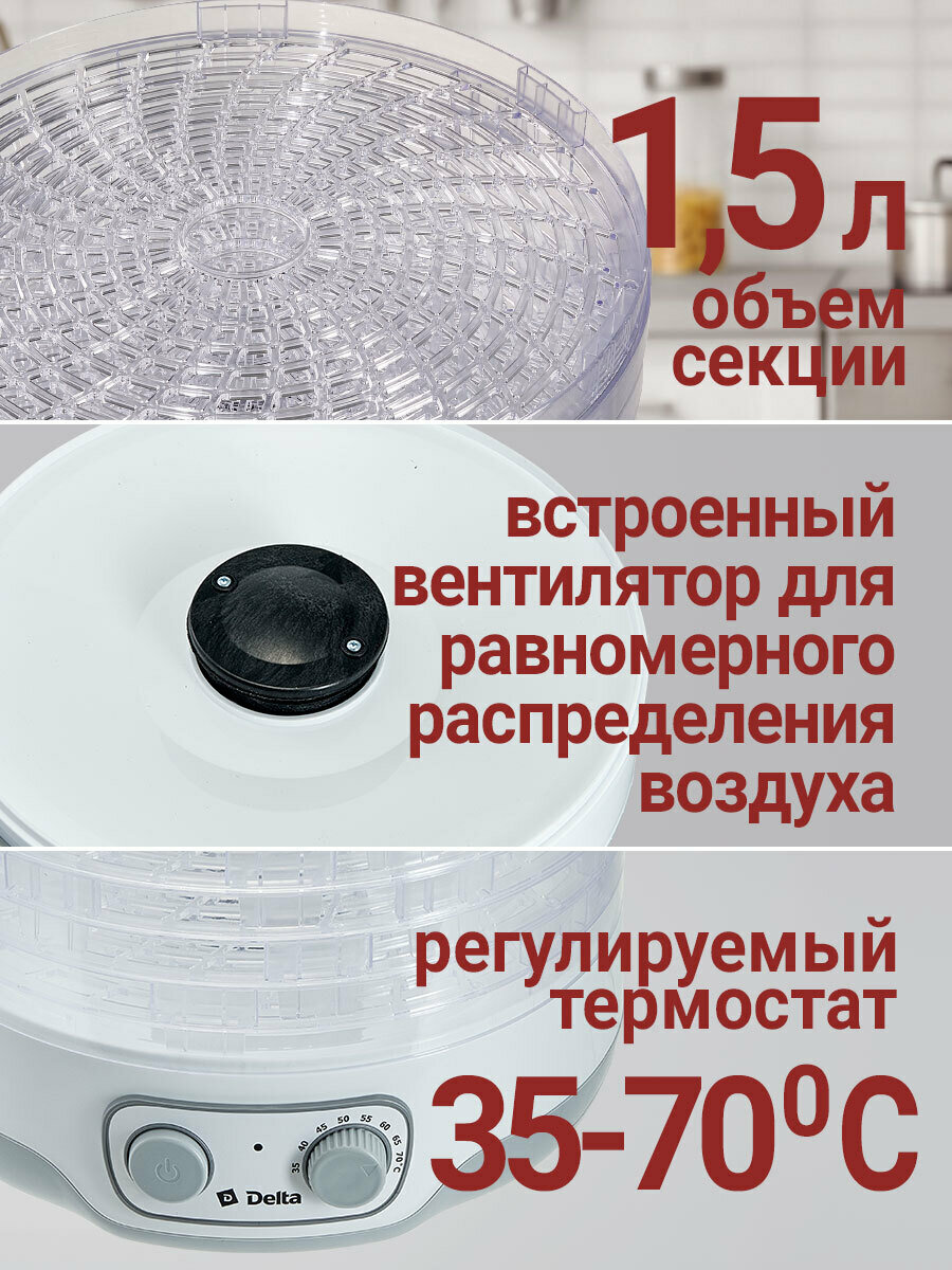 Сушилка для овощей и фруктов "DELTA" DL-6890 ; 250 Вт , обьем 8 л , 5 секций ( Россия ) (4)