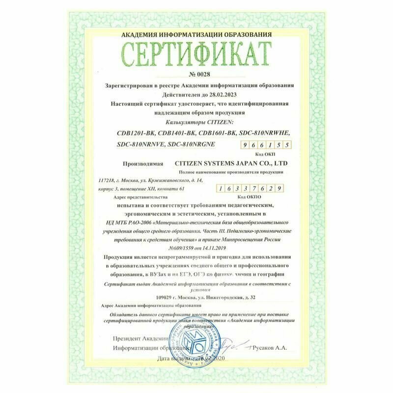 Калькулятор Citizen Cdb1201bk .