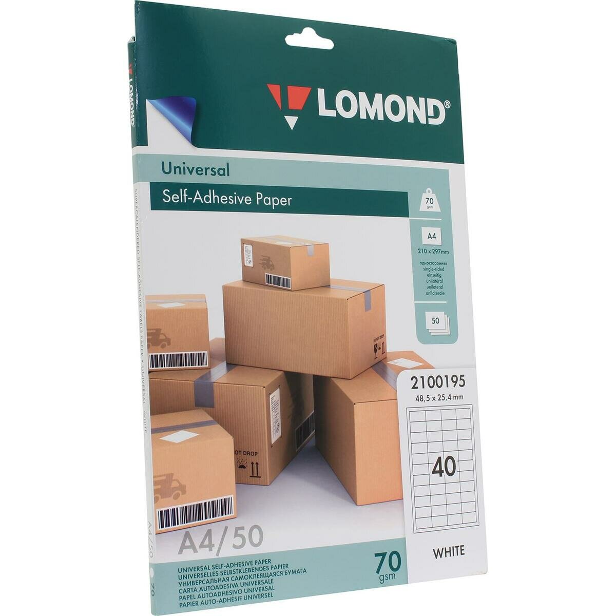 Lomond 2100195-70 (a4, 50 листов, 40 частей, 70 г/м2) бумага универсальная самоклеящаяся, белая .