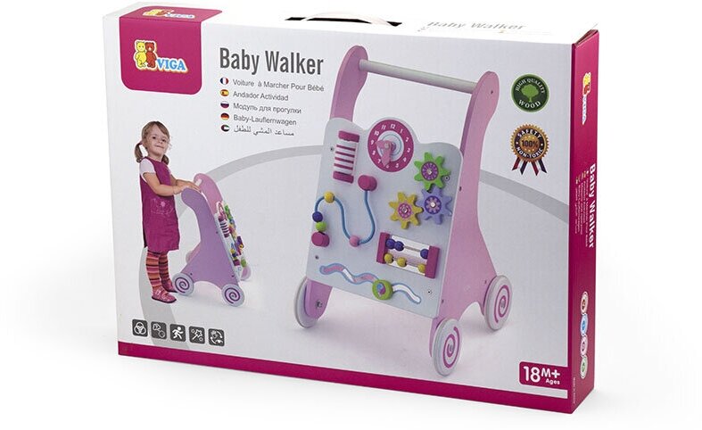 Купить "Детские ходунки - каталка Viga Toys 50178 с бизибордом, розовый (дерево)"