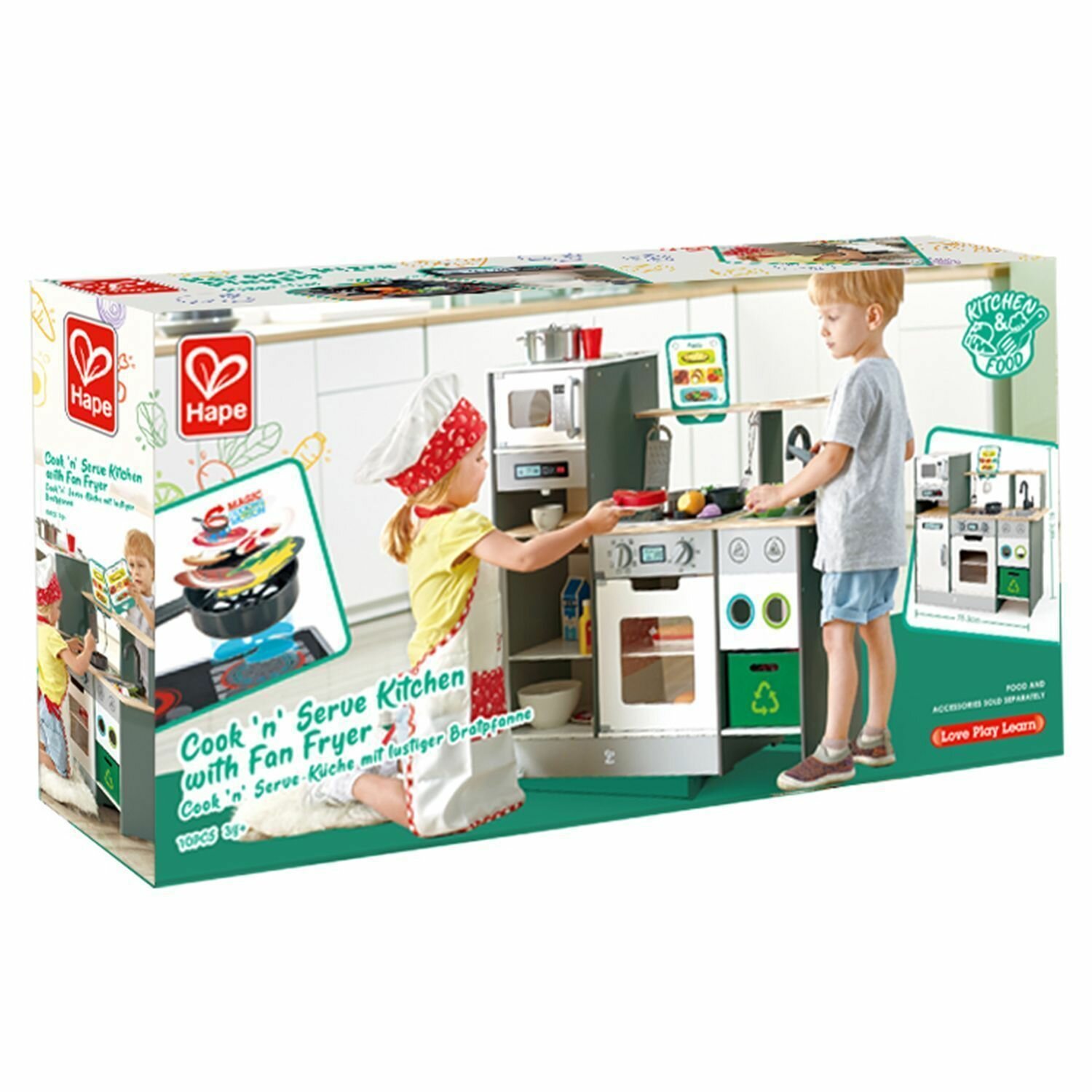 Купить Детская деревянная кухня с аксессуарами Hape "Делюкс Макси", свет, звук, воздушная фритюрница E3178_HP