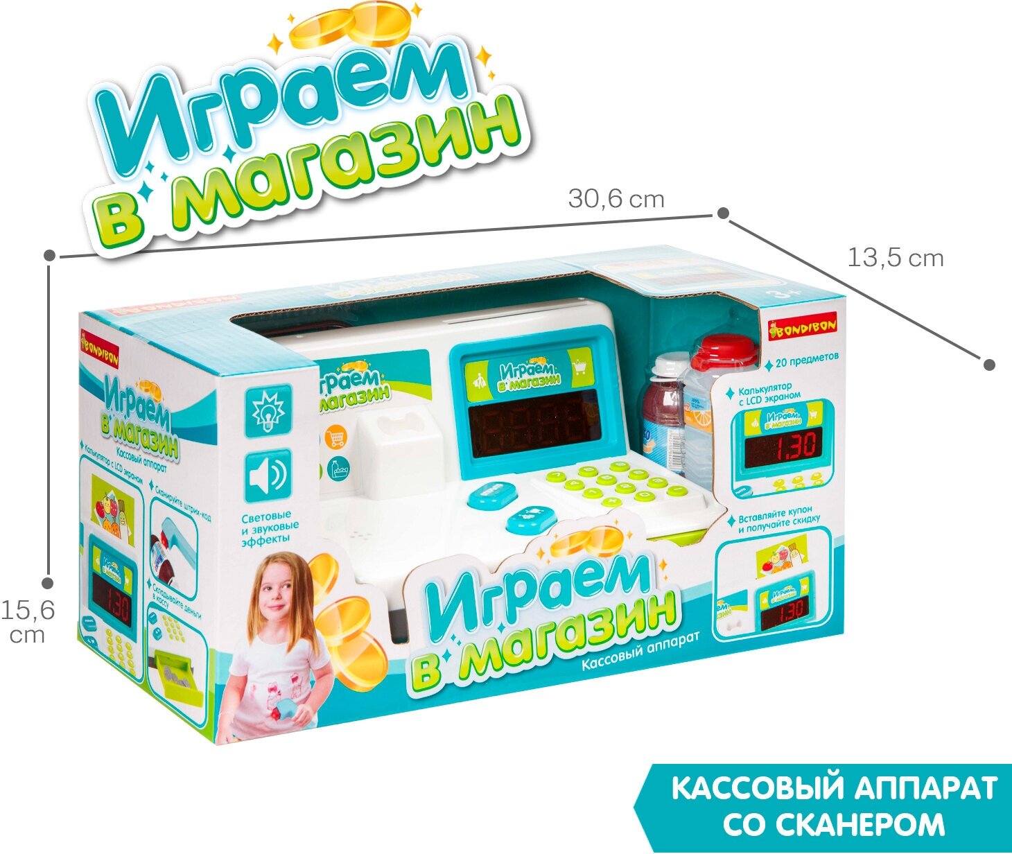 Игровой набор Bondibon, играем В магазин, с кассовым аппаратом, 20 предм. BOX ВВ4127
