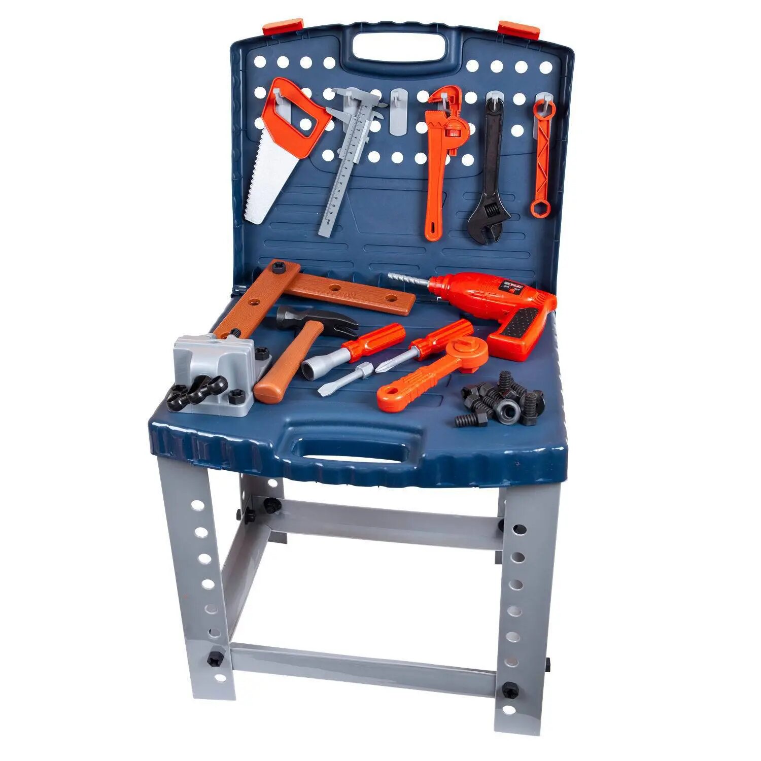 | Минусы: | Пластик не очень крепкий, что у ножек стола, что у ключей и штангенциркуля, дрель тоже не супер. Можно по отдельности набрать чуть дороже но качественнее инструменты. Так же вместо газового ключа положили 2 разводных. ? |