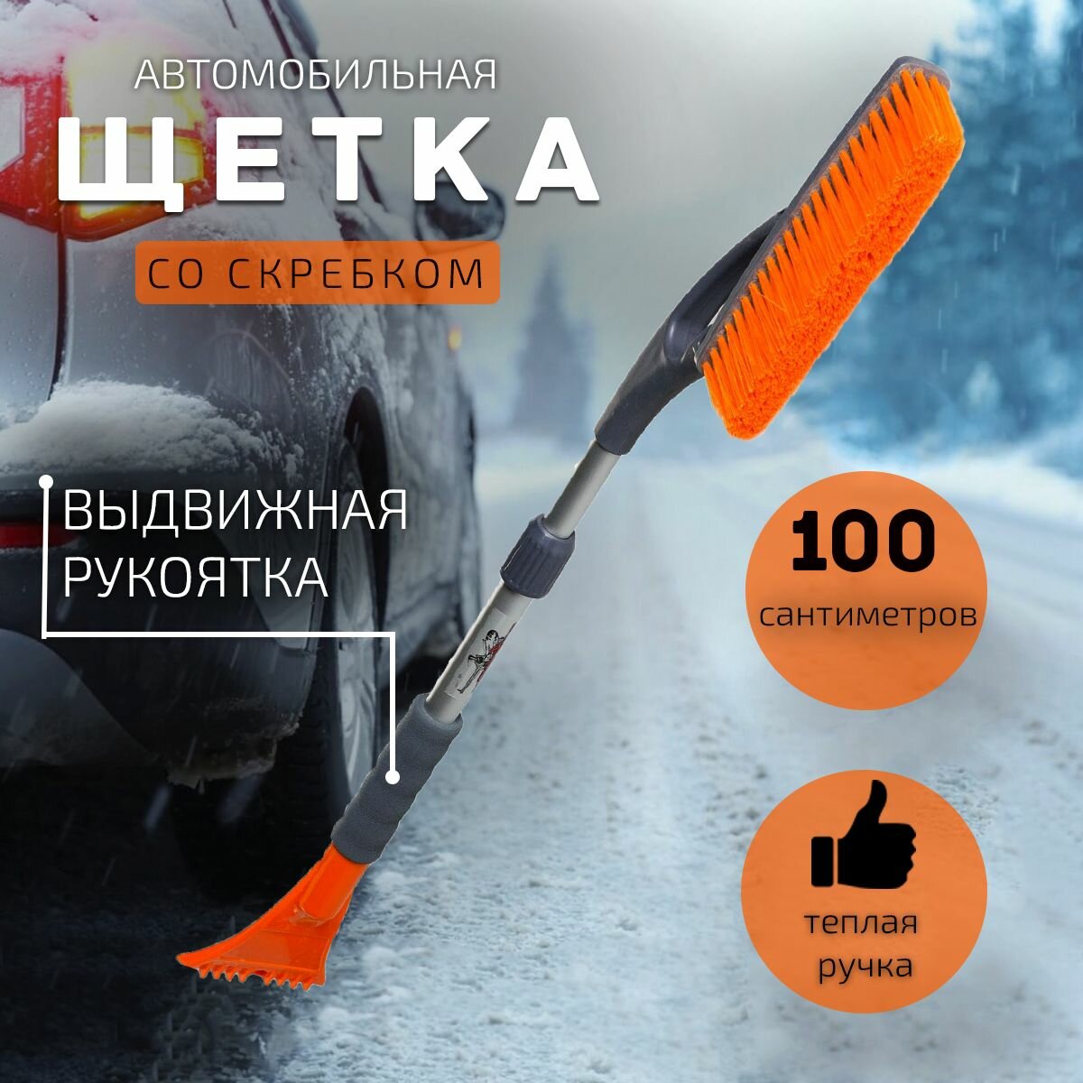 Щетка от снега и льда с телескопической рукояткой и мягкой щетиной + скребок (80-100 см)