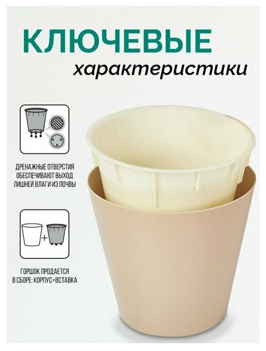Горшок для растений с дренажной вставкой 10.5 л, сливочный