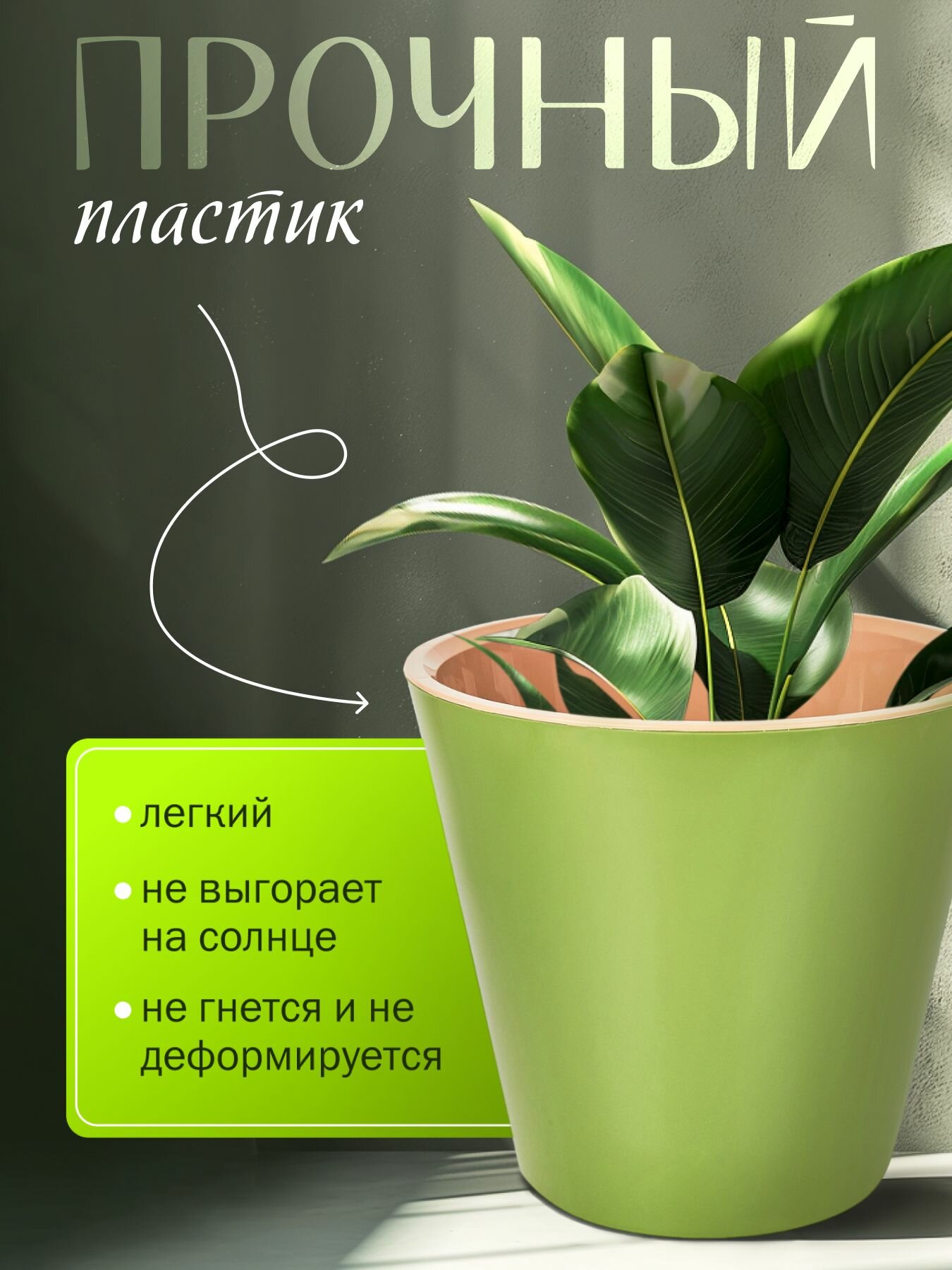 Горшок для цветов пластик, 5 л, 23х23 см, оливковый, InGreen, London, ING6206ОЛ