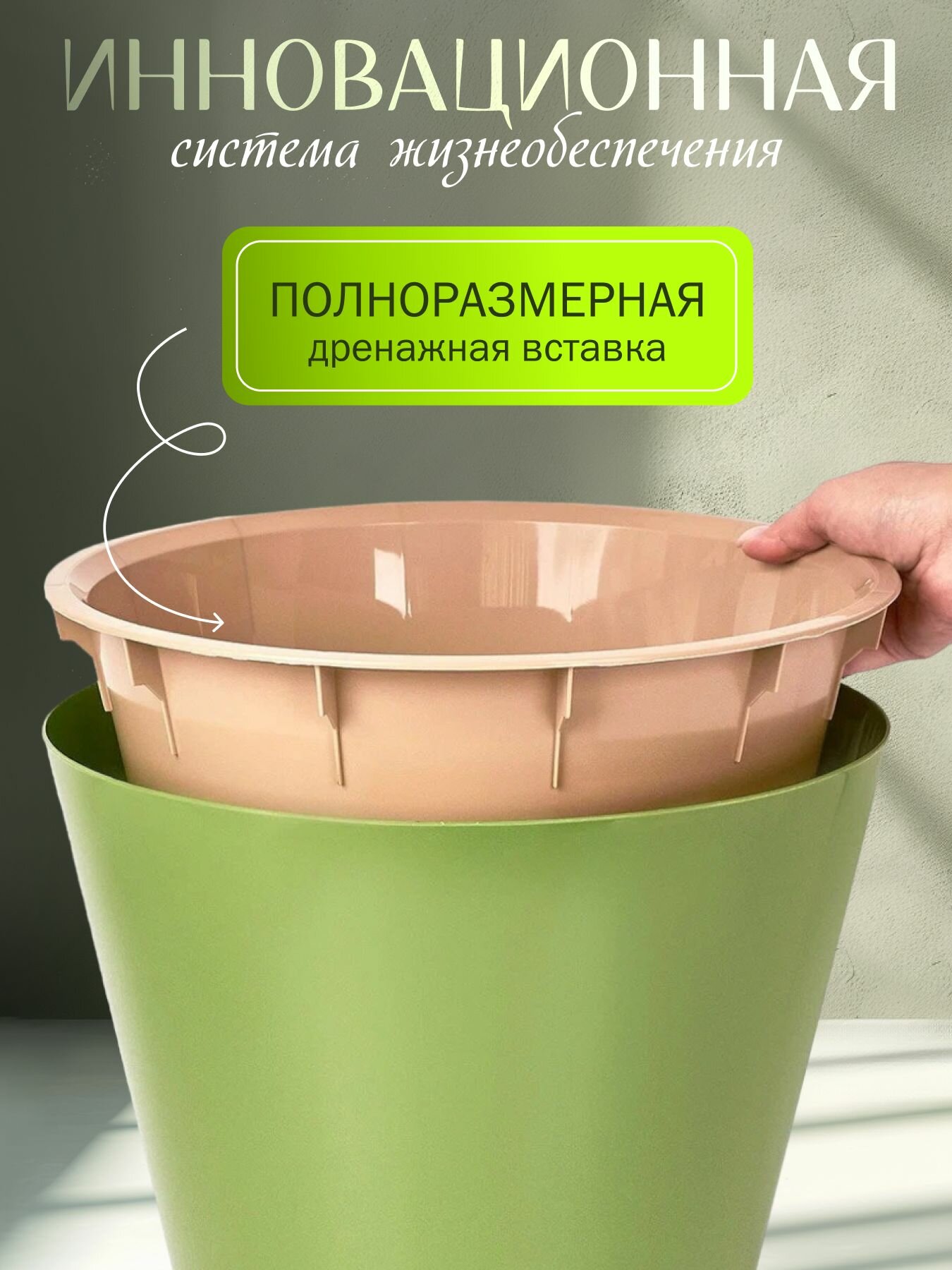Горшок для цветов London D=160мм (1,6л) со вставкой, Олива, пластик ING6204ОЛ InGreen