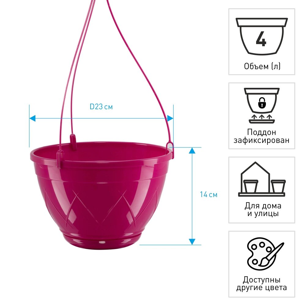 Купить Горшок цветочный Santino "Лилия подвесная" 4 л, лиловый, пластик