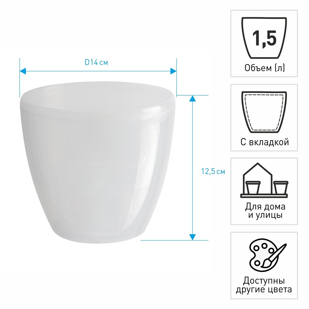 Горшок для цветов пластиковый 1,5 л "Деко Твин" d=14 см, h=12,5 см, автополив, цвет белый