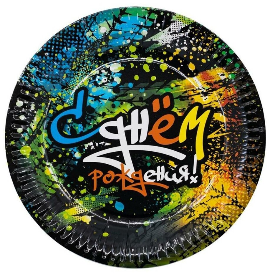 Купить Тарелки бумажные одноразовые Riota Граффити, черный, 23 см, 6 шт