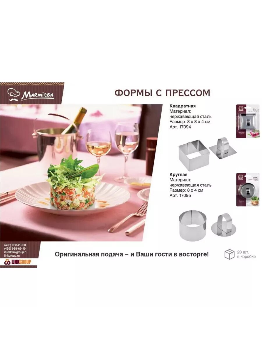 Ниже Вы можете прочитать отзывы на Форма с прессом для выкладки салатов и гарниров из нержавеющ, ознакомится с подробными характеристиками, посмотреть интересные обзоры и фотографии на Форма с прессом для выкладки салатов и гарниров из нержавеющ.