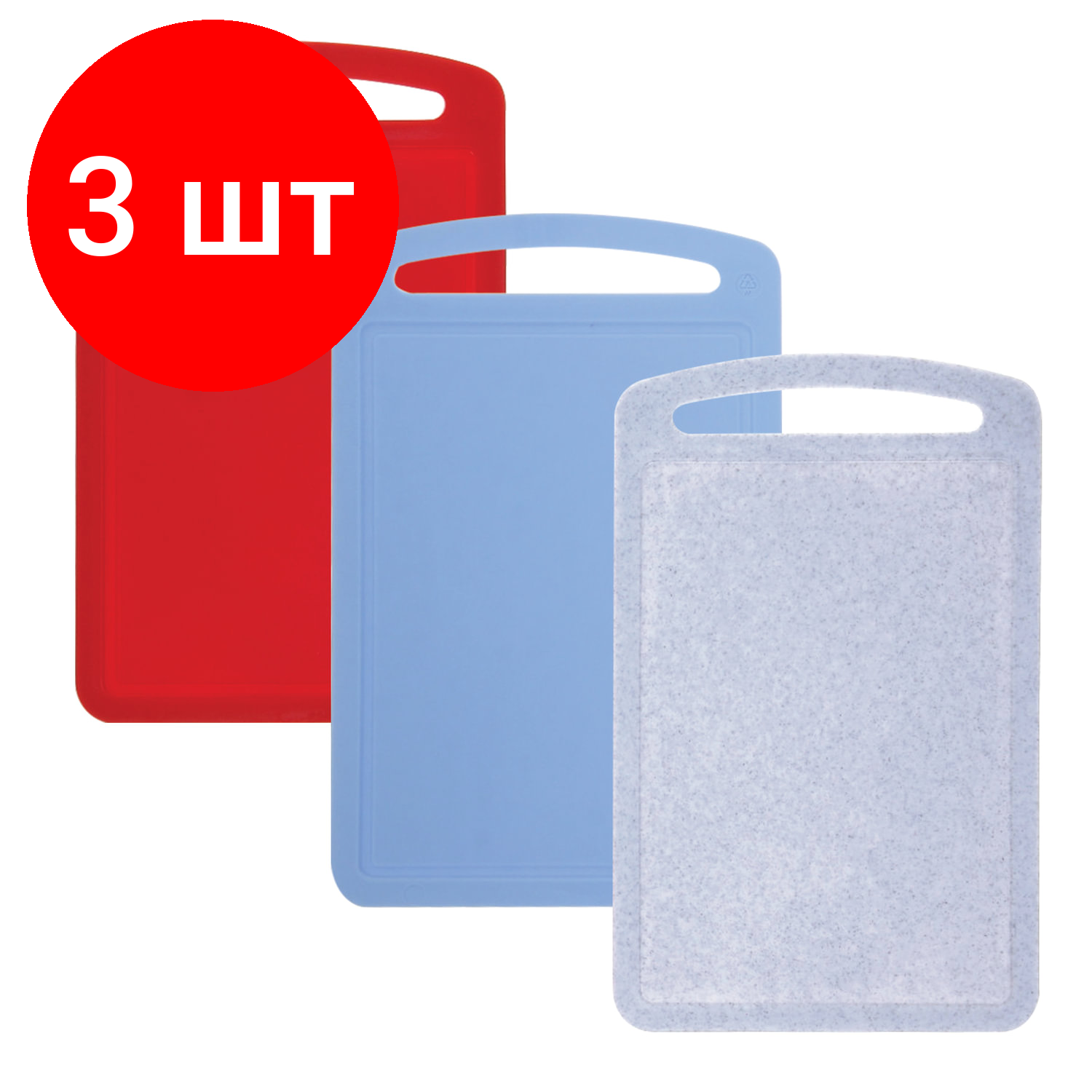 Комплект 3 шт, Доска разделочная пластиковая, 0.8х19.5х31.5 см, цвет микс (разноцветный), IDEA, М 1573