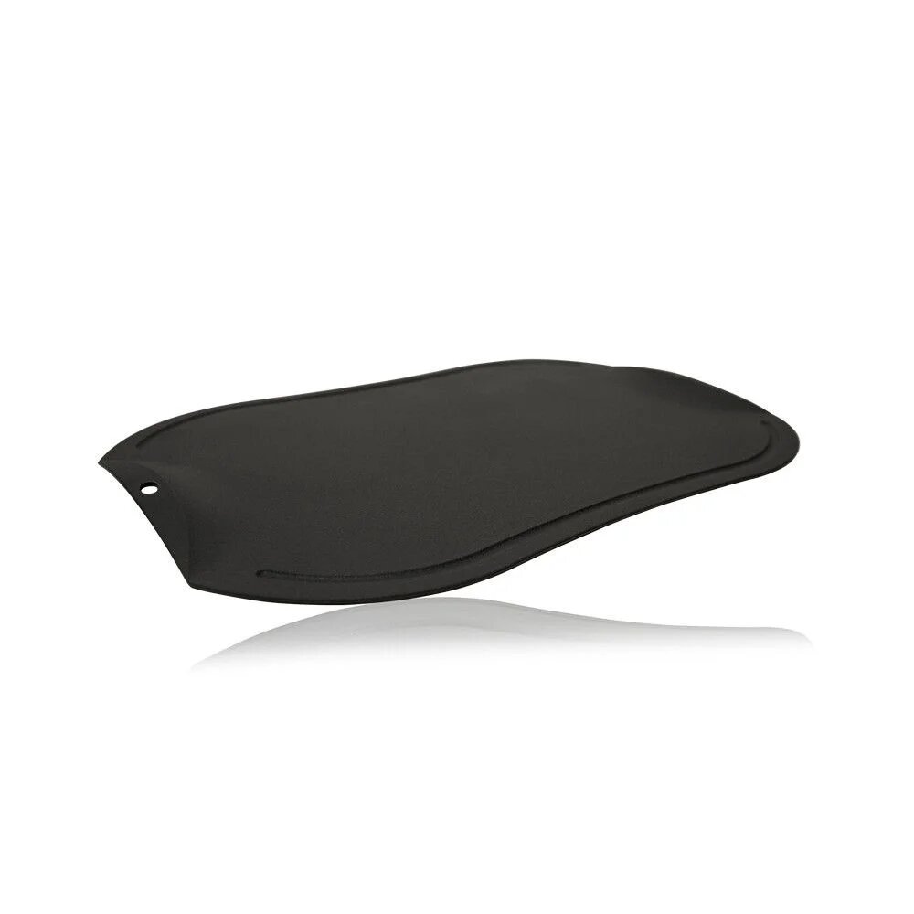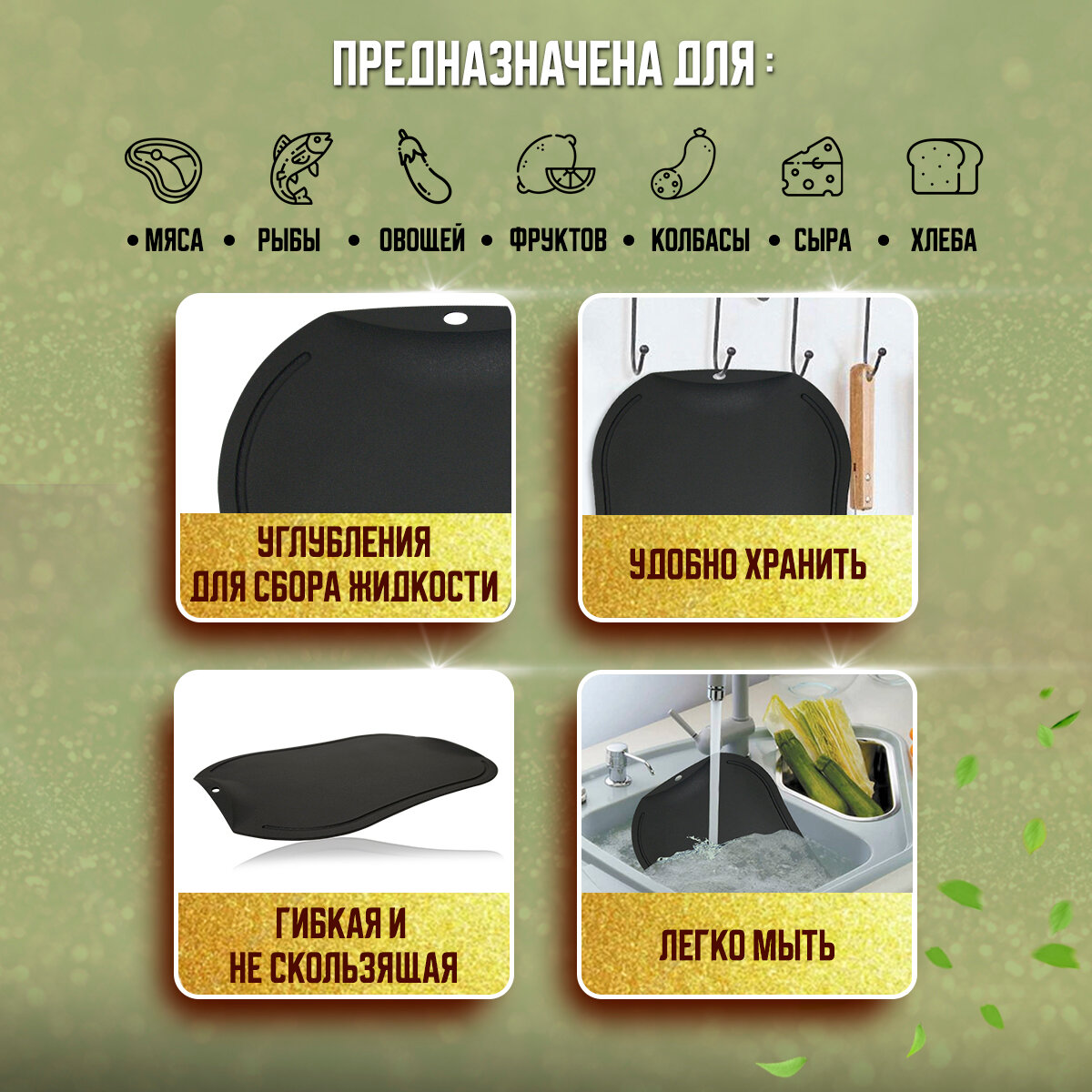 Гибкая, по периметру есть желобок, что позволяет собираться жидкости при нарезке сочных продуктов.