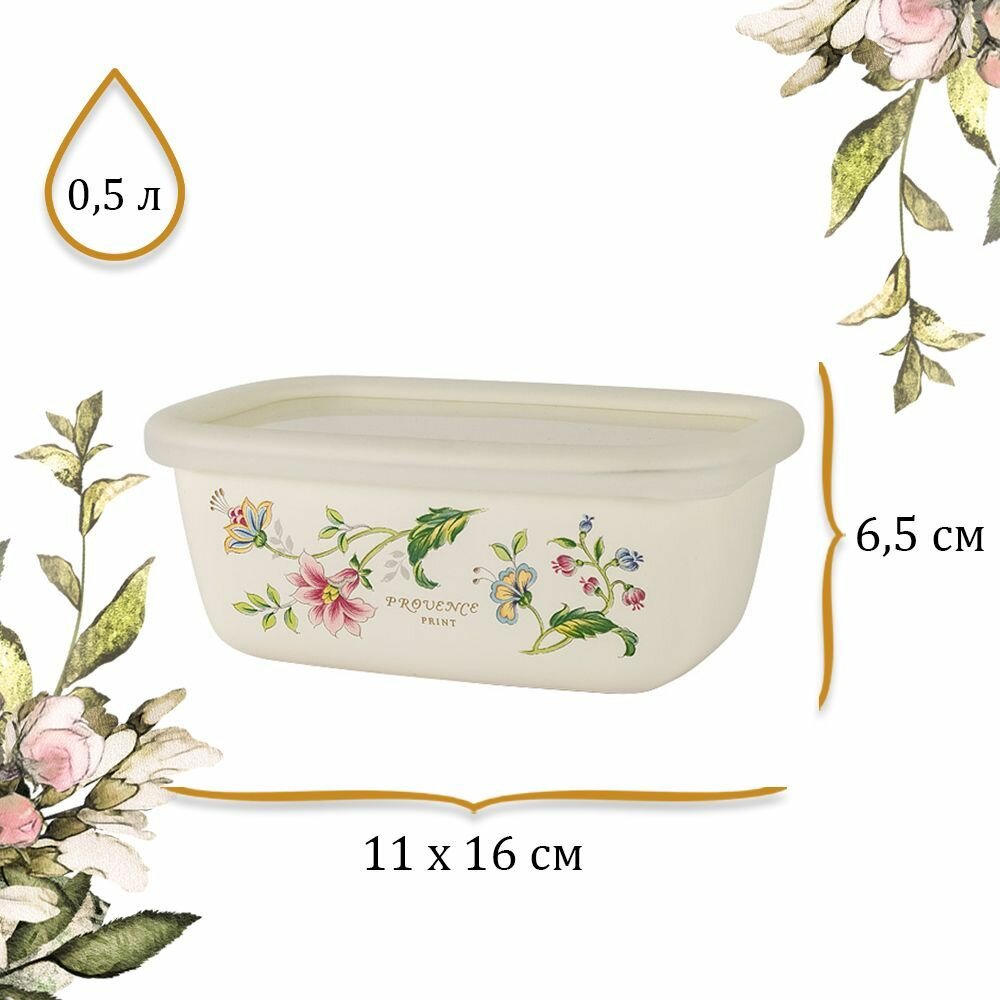Контейнер EJIRY эмалированный стальной с крышкой, белый/декор "Прованс", 16х11х6.5 см, 0.5 л (EJ-PVR-B1)