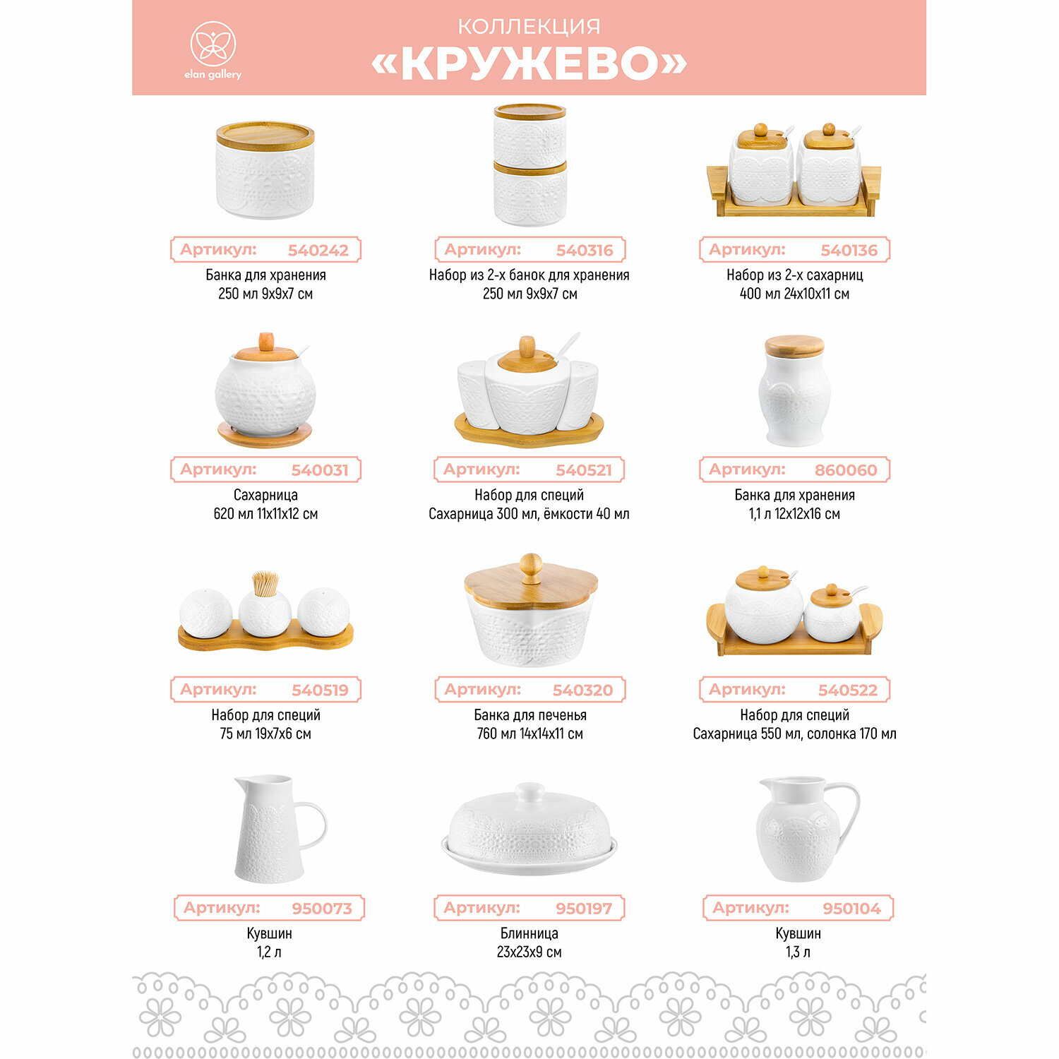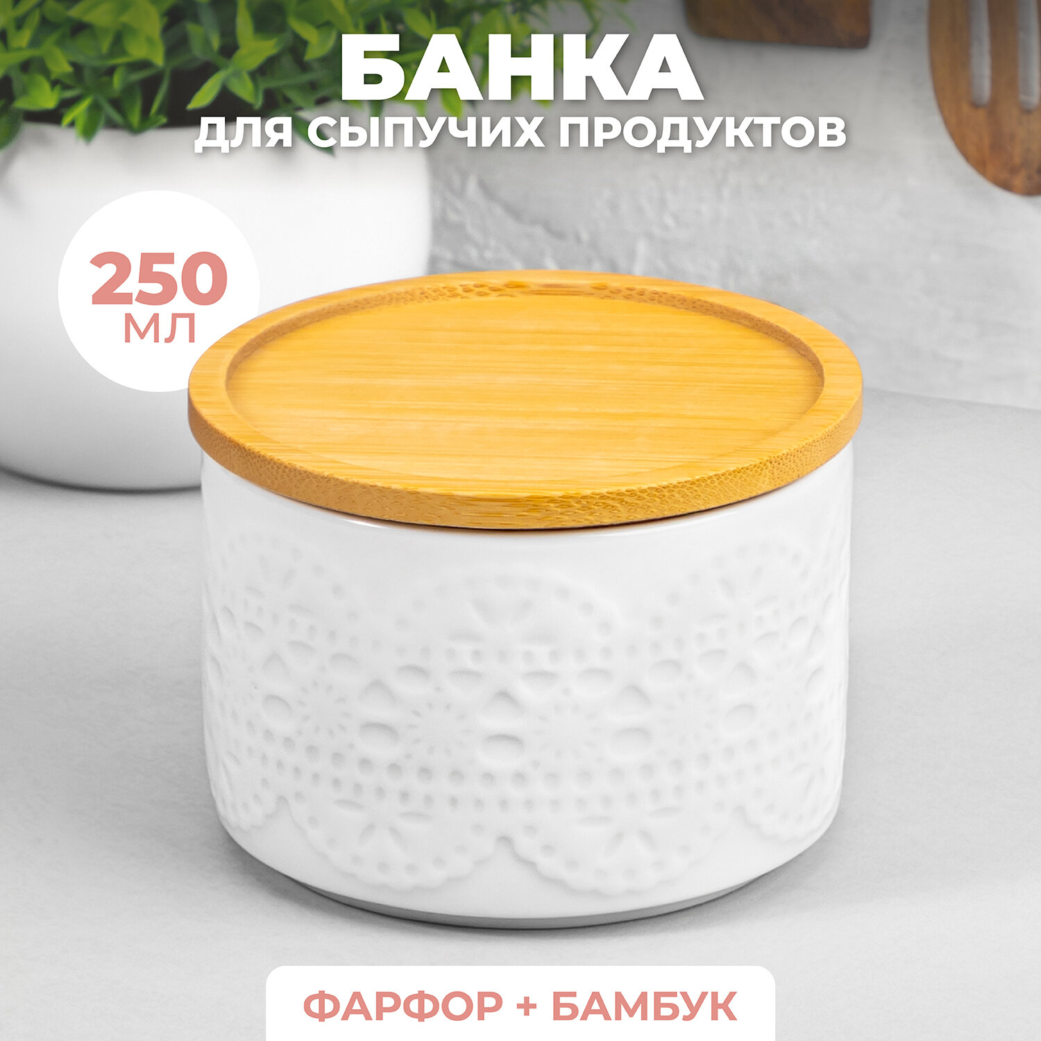 Банка для хранения сыпучих продуктов, соли, специй, чая, кофе 250 мл Elan Gallery Кружево, дер. крышка-подставка интересное: