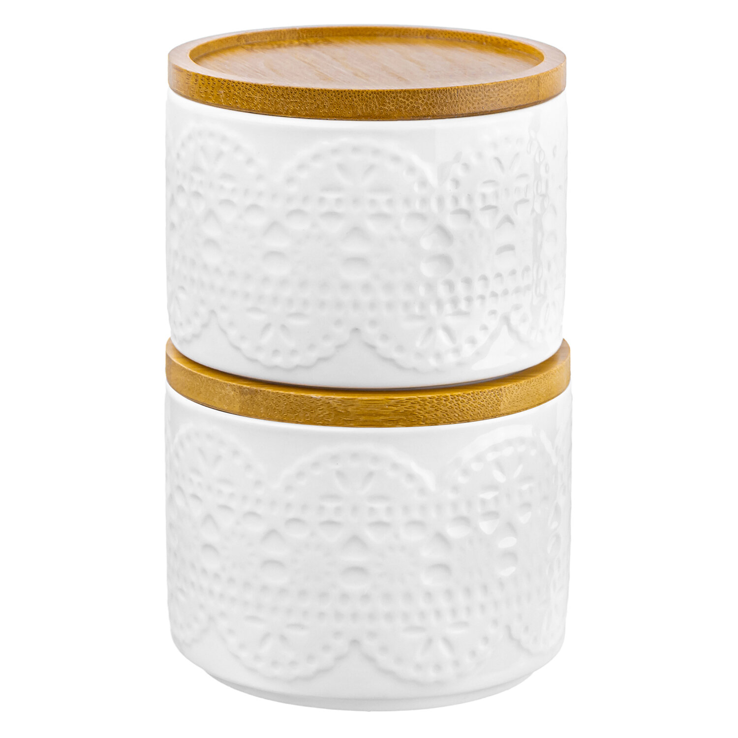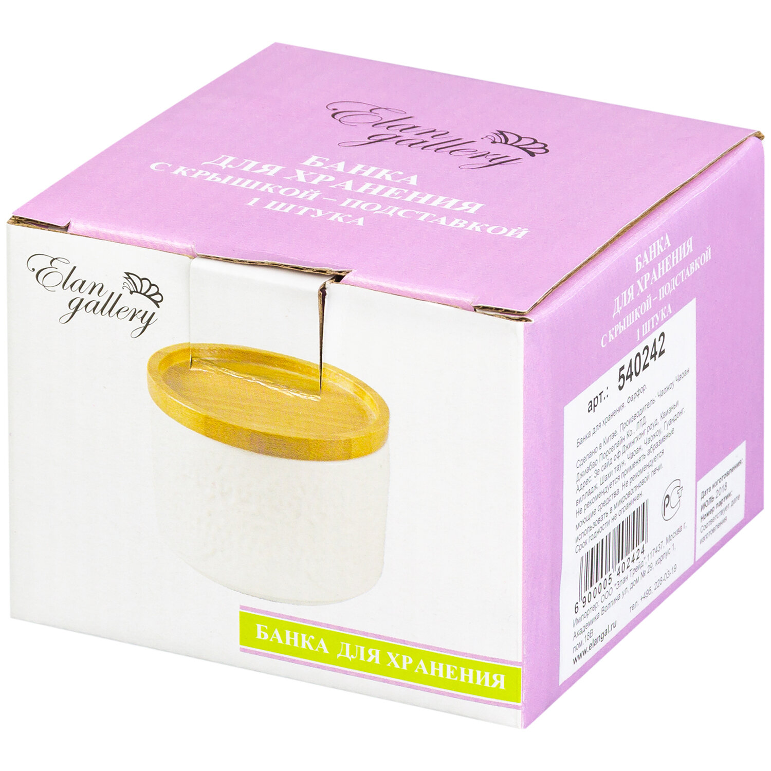 Купить Банка для хранения сыпучих продуктов, соли, специй, чая, кофе 250 мл Elan Gallery Кружево, дер. крышка-подставка