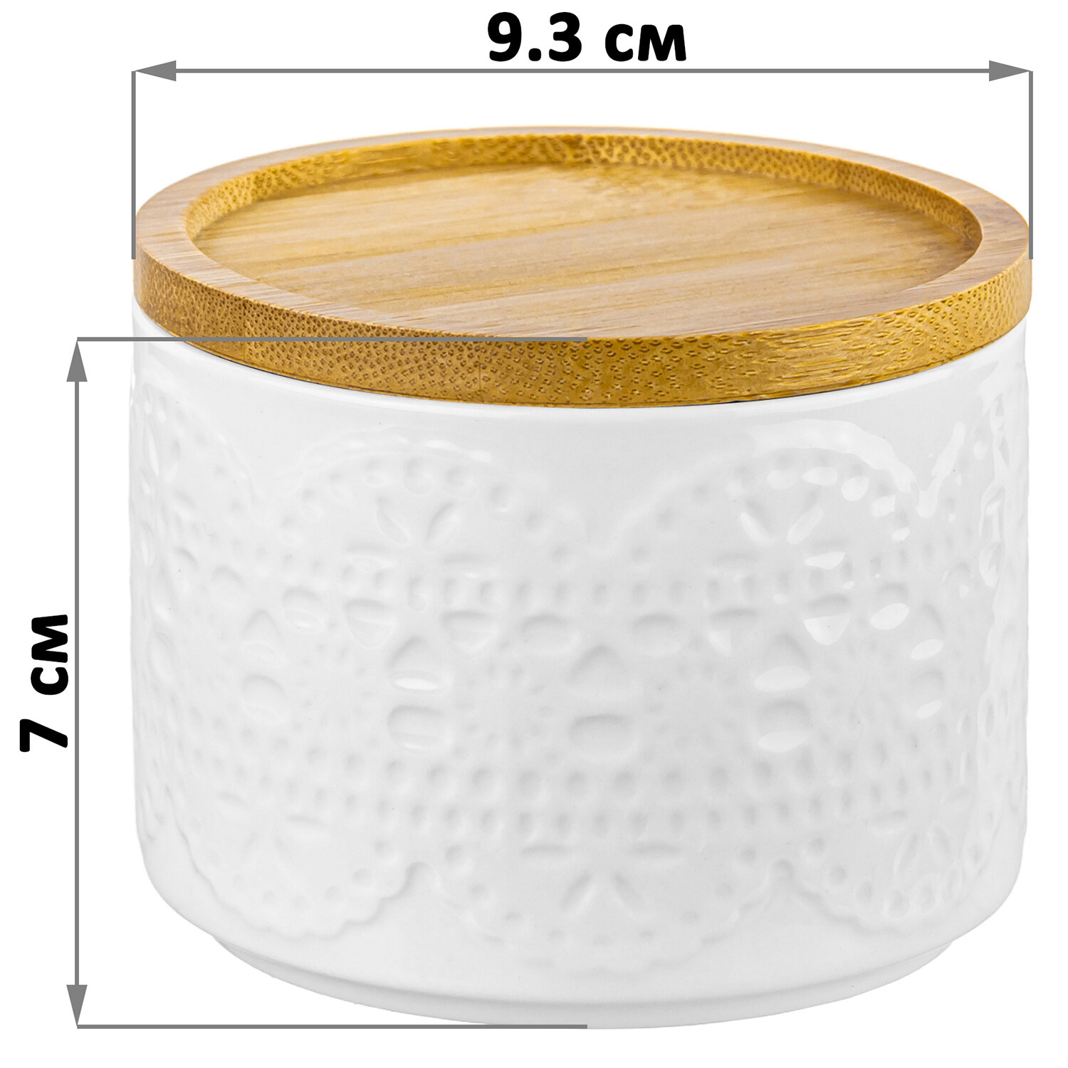 Банка для хранения сыпучих продуктов / соли / специй / чая / кофе 250 мл Elan Gallery Кружево+ дер. крышка-подставка с сил. упл.