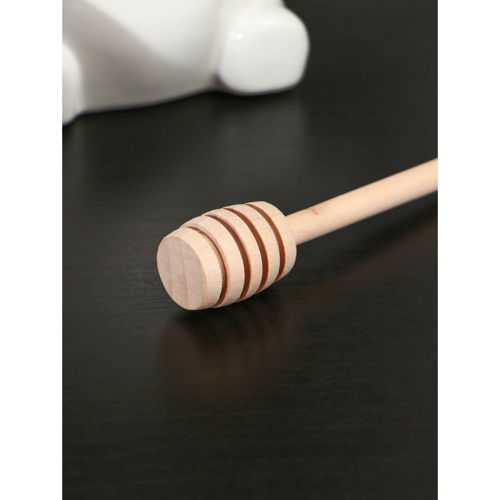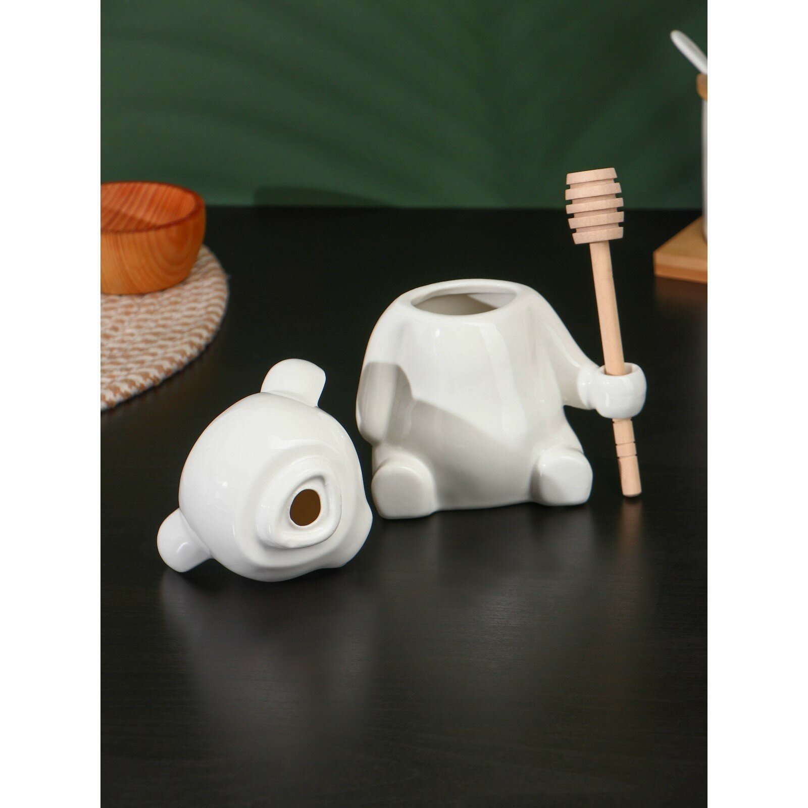 Ёмкость фарфоровая для мeда с ложкой Мишка, 280 мл, цвет белый
