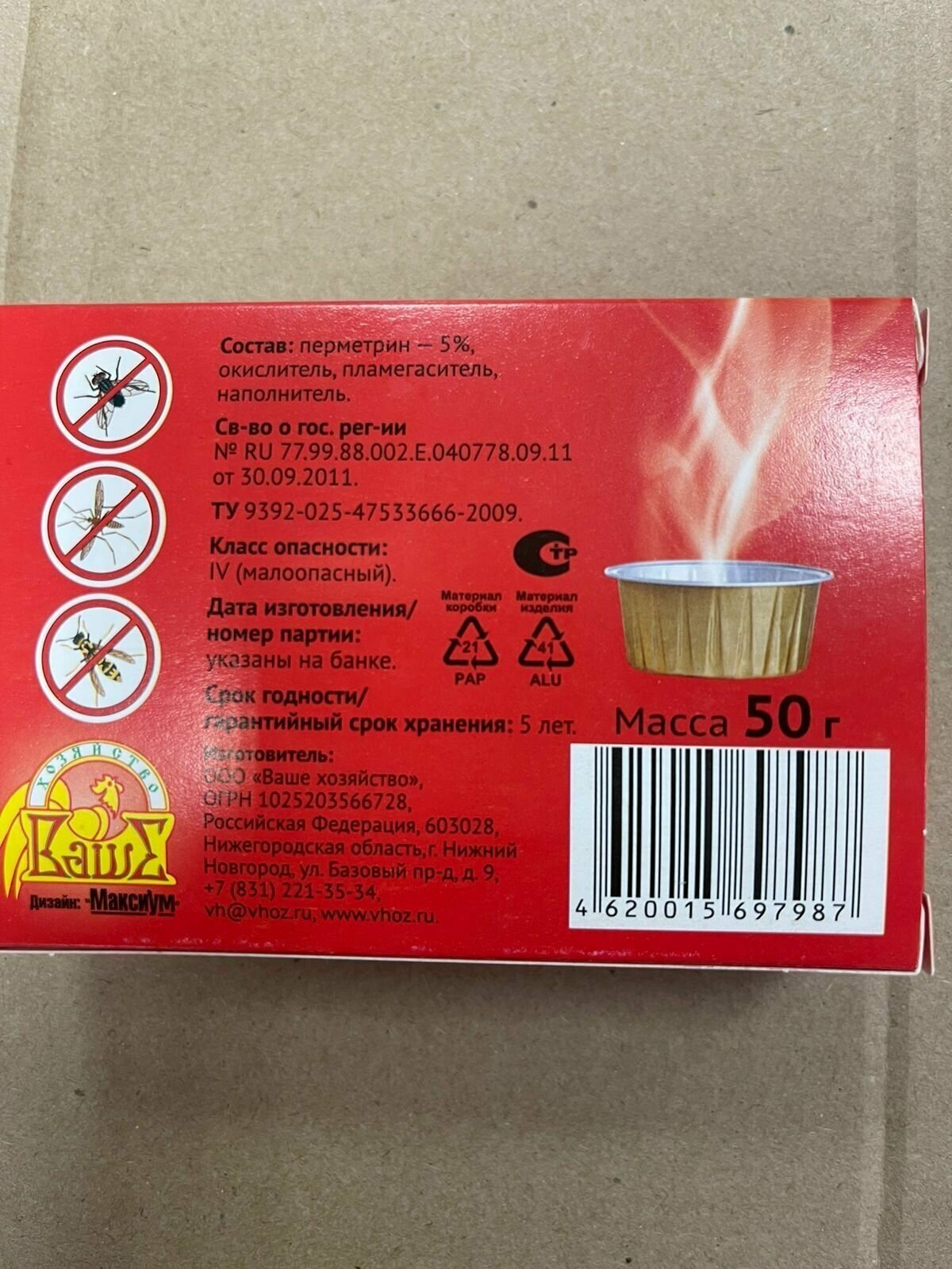 Шашка Ваше хозяйство Мухояр дымовая инсектицидная от мух, комаров и ос в коробке, 50 г, 50 мл, разноцветный