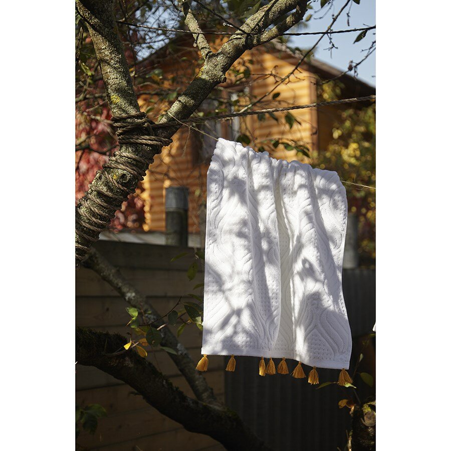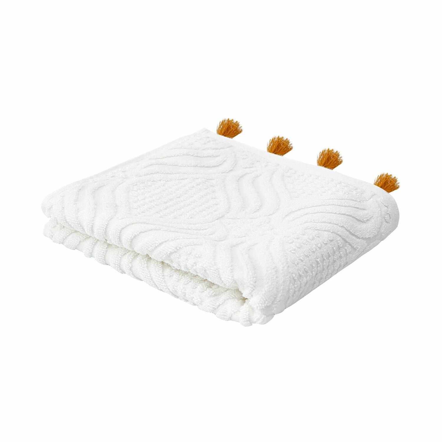 Полотенце банное белое, с кисточками цвета карри из коллекции essential, 70х140 см