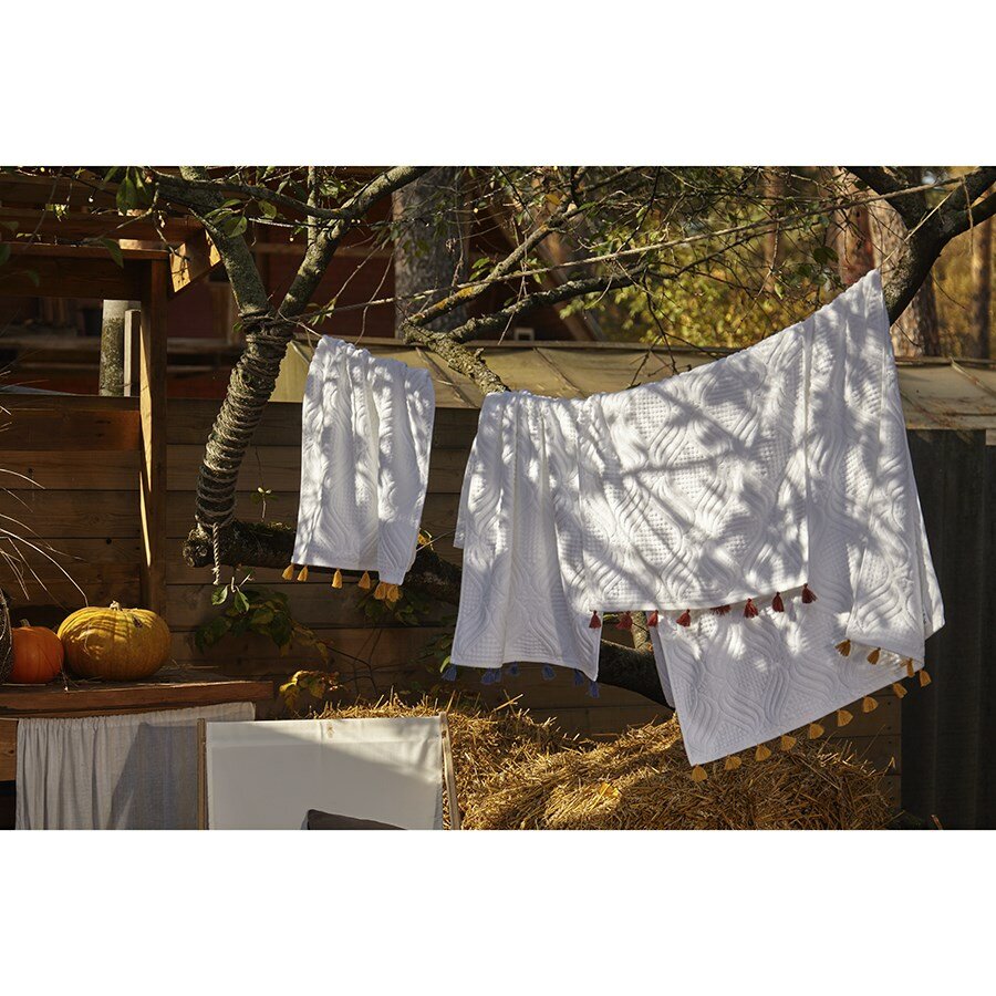 Полотенце банное для ванной 70х140 см из коллекции Essential для тела хлопковое белое с кисточками Tkano TK23-BT0003