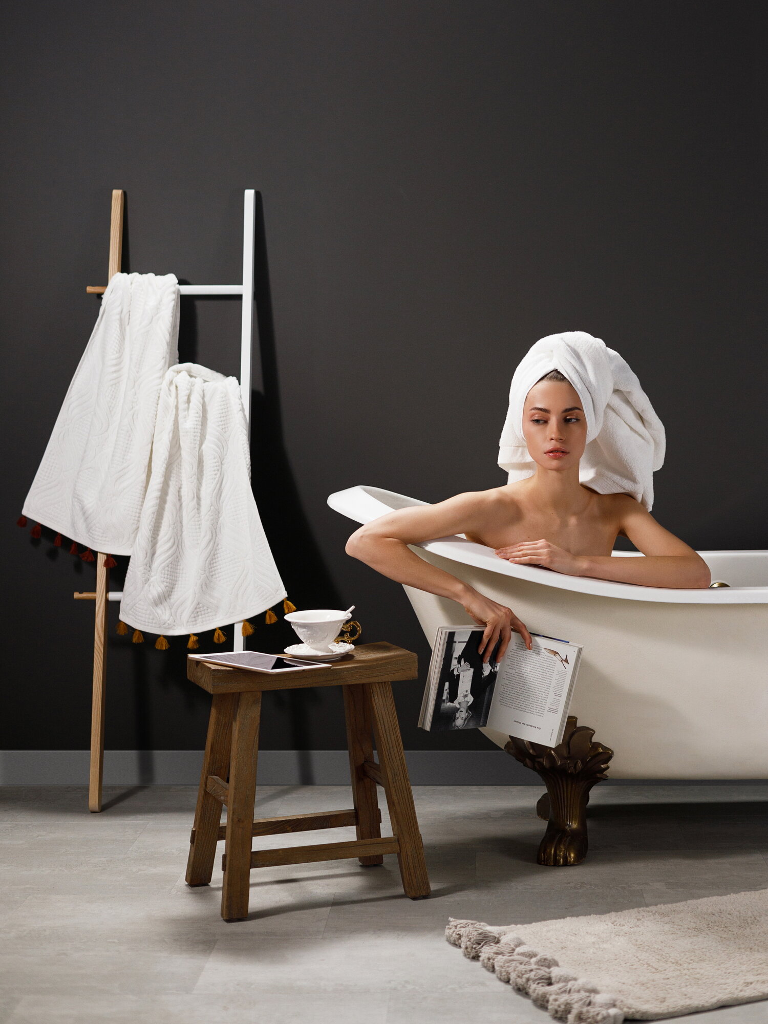 Полотенце банное Waves белого цвета Essential, 70х140 см, Tkano, TK18-BT0021