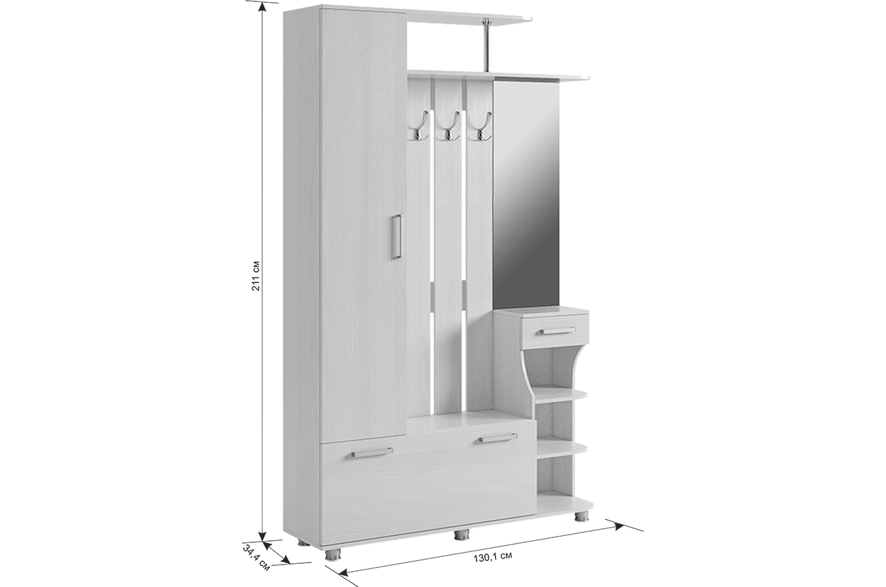 Прихожая Мебельсон Барселона-1 белый рамух 130х34х211 см